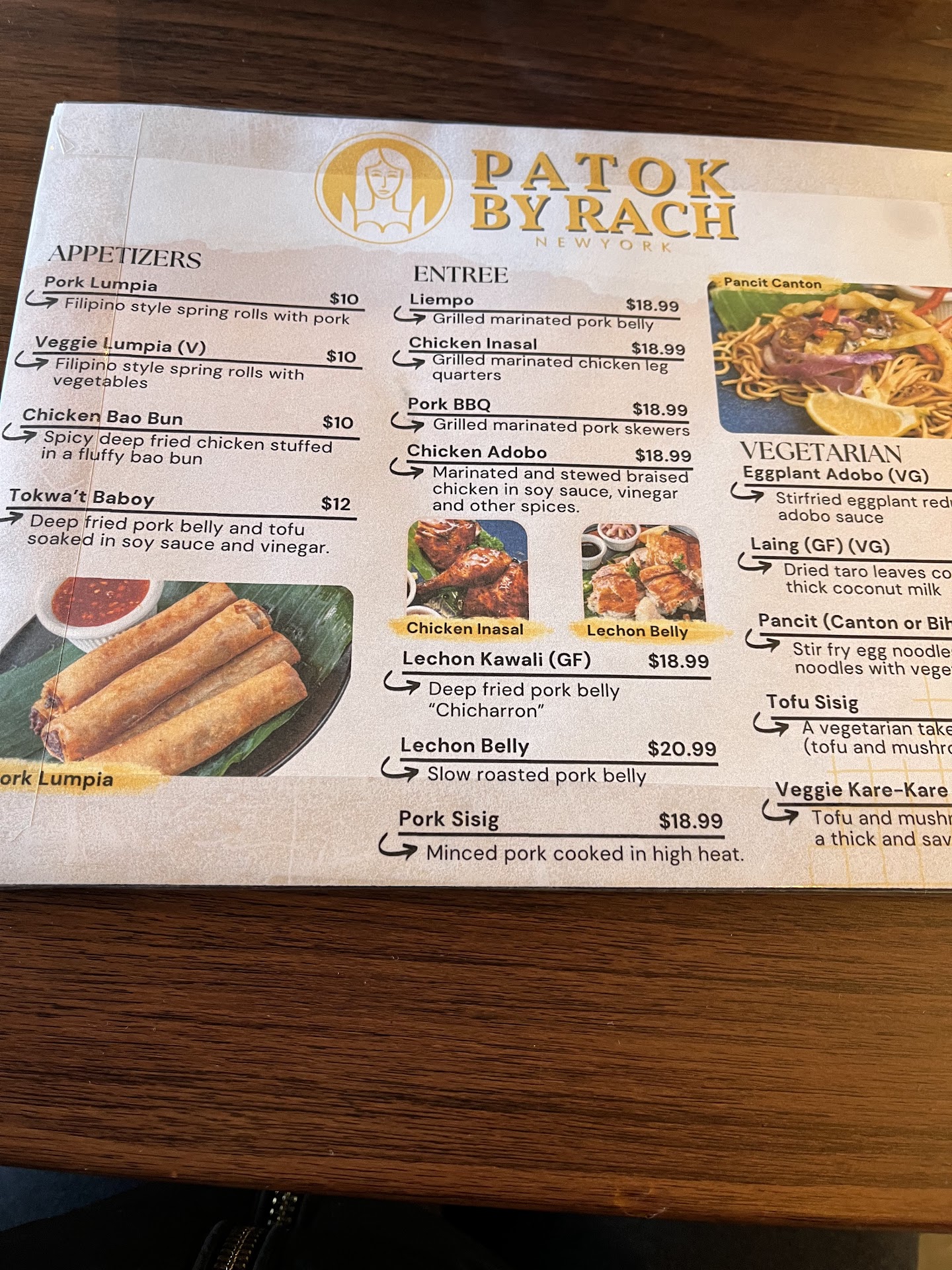 Ā Ā Ā Read morePatok by Rach is a hidden gem that brings the vibrant flavors of the Philippines to New York City. From the moment you walk in, the warm and inviting atmosphere makes you feel like you're part of a family. The menu is full of authentic Filipino dishes, each prepared with care and bursting with flavor.