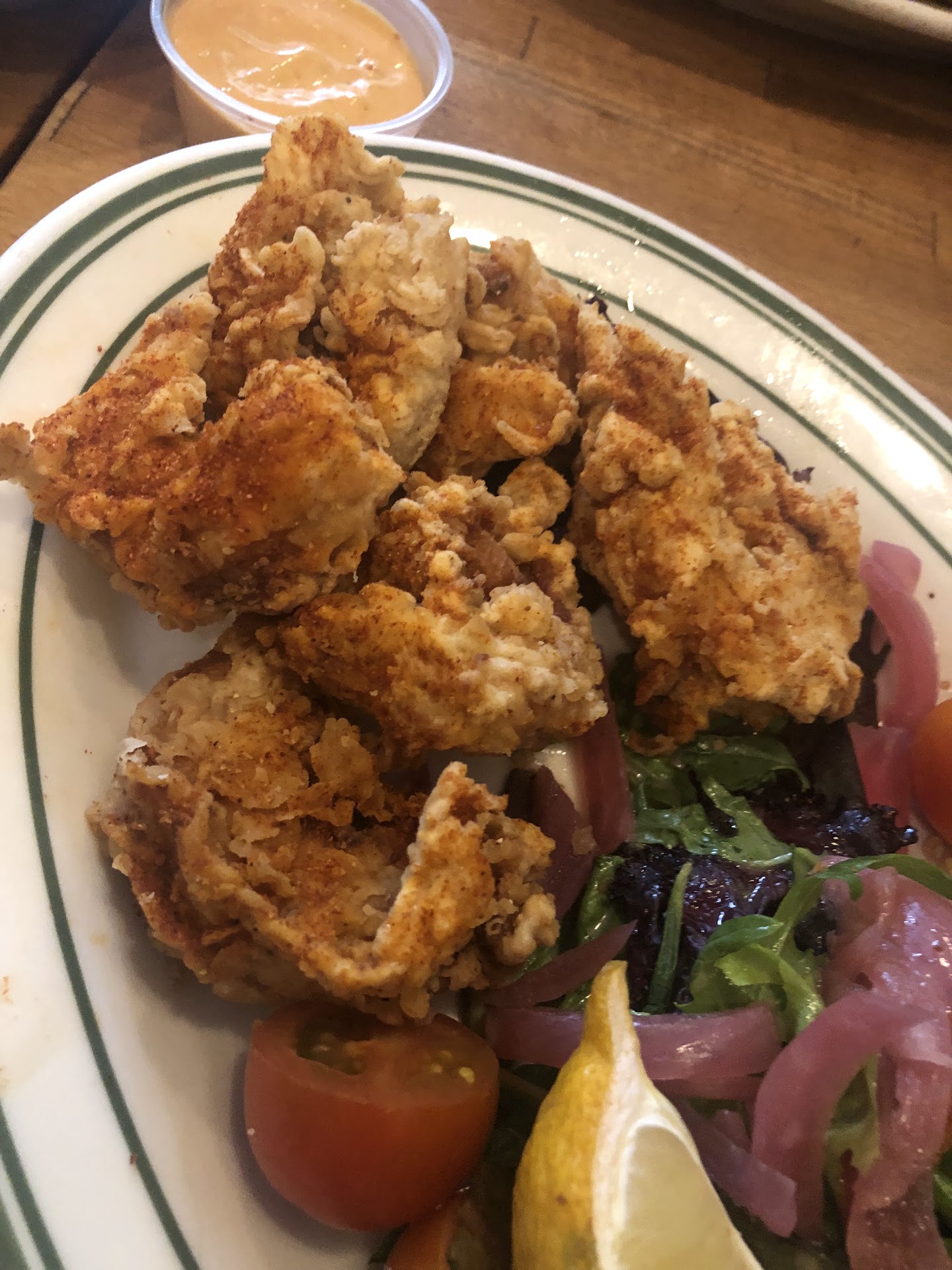 This is a review of Peaches Hot House take out. I ordered through Grubhub and the order was ready promptly. I am in the neighborhood so the food was still warm when eaten. Obviously the presentation of takeout isn’t going to be as pretty as dining in so I will not critique that. The flavors were definitely present and pleasant. I had the fried chicken sandwich and had crispy grits as a side.