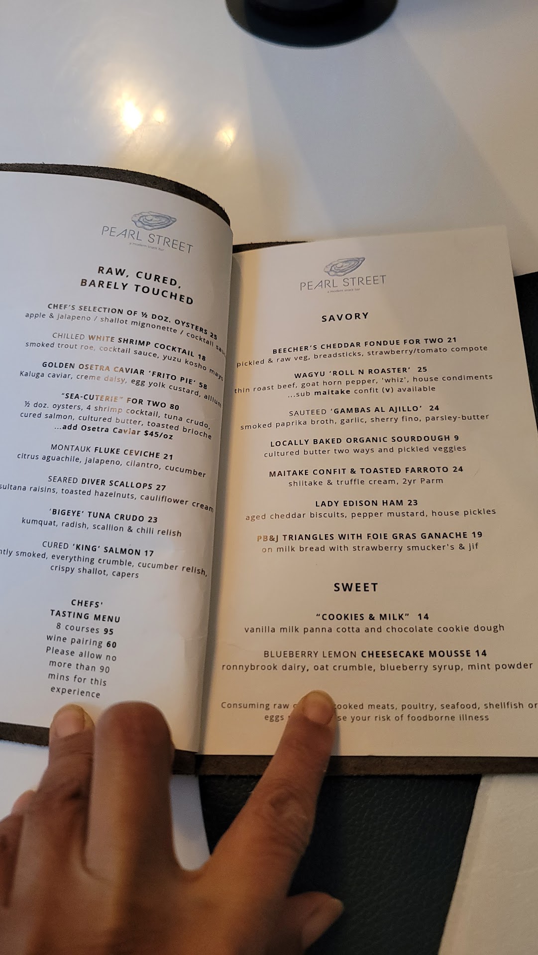 Read moreI visited Pearl Street Raw Bar & Restaurant over Thanksgiving weekend with a friend who discovered it through a Reddit thread on the best value tasting menus — and wow, what a find! From the moment we walked in, we were met with warmth, genuine hospitality, and an impressive depth of knowledge from the entire staff. It’s rare to encounter a team that’s so passionate about what they do, and it showed in every detail.