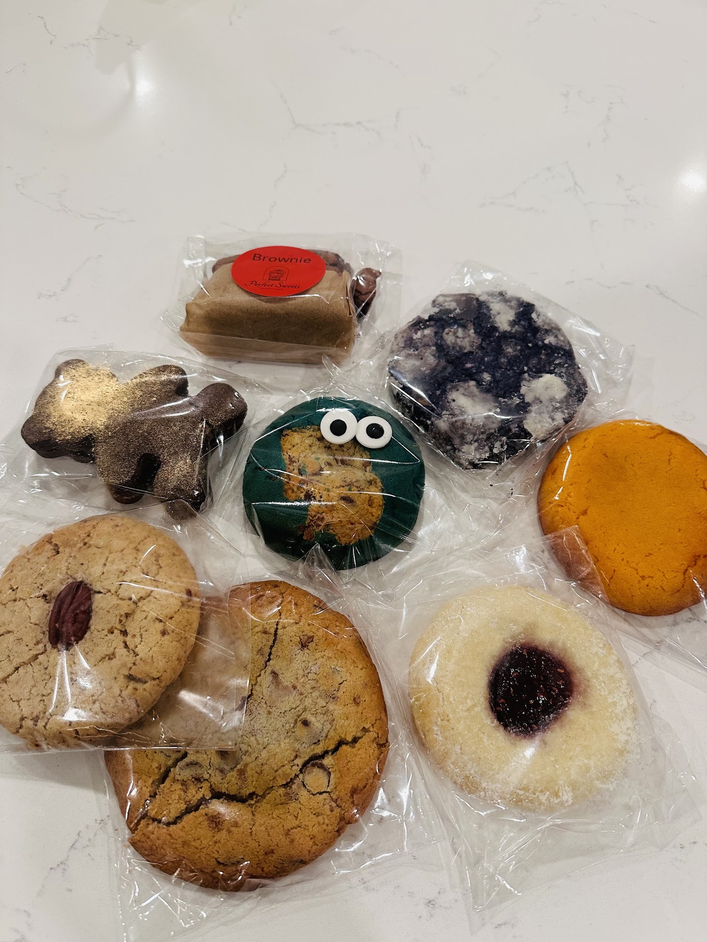 All the treats are made with care and expertise. Even things I thought I would not enjoy, I have been proven wrong by the chef at Perfect Sweets. Was never a fan of chocolate, I am quick to pick up their 14 layer chocolate cake. Didn't care for cheese, I routinely crave their cheddar cookie. Always thought I didn't like meringue, have now picked up their meringue cookies a dozen times.