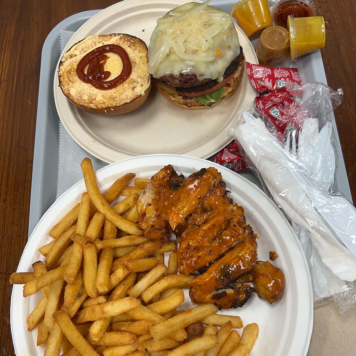 The place is clean, the food tastes good too. However, it’s a bit pricy for the neighborhood and what’s provided. For example, you get your food on paper plates. It’s not a big deal, but for the price, you’d expect actual plates. Furthermore, you get a small portion of peri peri chicken with lots of fries. The burger does not come with fries or a drink. $14.99 is too much for just one burger. The peri peri chicken should come with rice but rice isn’t a side option unless you purchase it separately.
