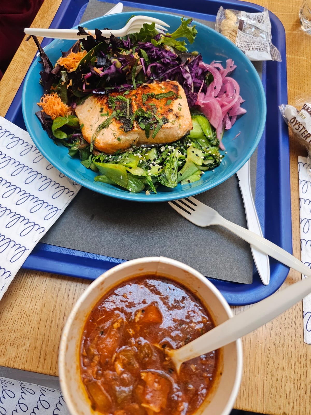 I work in the city a few days per week and it can be a challenge to find midtown options for a solo diner: high-quality, high-flavor food that won’t cost me an arm and a leg and won’t require hours of my time. Fortunately I recently discovered The Hugh food hall, and after exploring the myriad dining options, I settled on ordering a combo of three fish tacos at Pesce Lulu Seafood Kitchen: grilled shrimp, roasted salmon, and mahi mahi. Not only were the tacos delicious—well seasoned and perfectly cooked—you could tell that the ingredients were fresh.