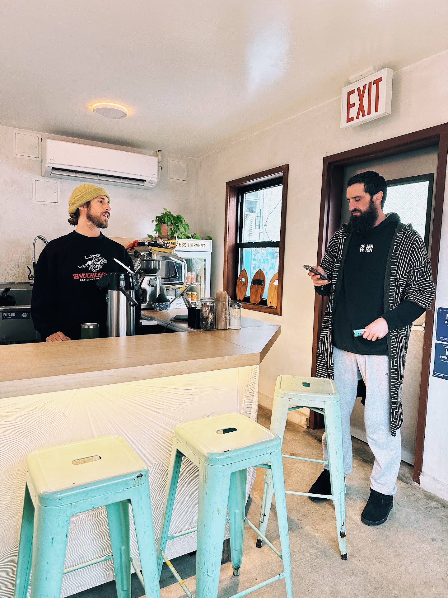 I had the pleasure of stopping by Phase in Rockaway Beach on a rainy spring morning, and it was the perfect cozy escape! The atmosphere is warm and inviting, with a lovely big window that looks out onto the sidewalk. It was so nice to see a few friends passing by on their way back from surfing at the beach—it really adds to the community vibe.