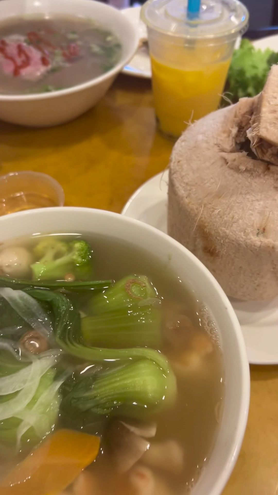 I had a bunch of items from here. The beef with fried rice was amazing, I had to order two! Also ordered the seafood pan fried noodles, another must get. Got the summer rolls, spring rolls, and fried squid for apps - classic and stuffed. The coconut juice is fricken amazing, it comes from a real coconut and super sweet! Definitely organic. That's when you know it's the best. Highly recommend this place if you're around looking for a good yummy broth!