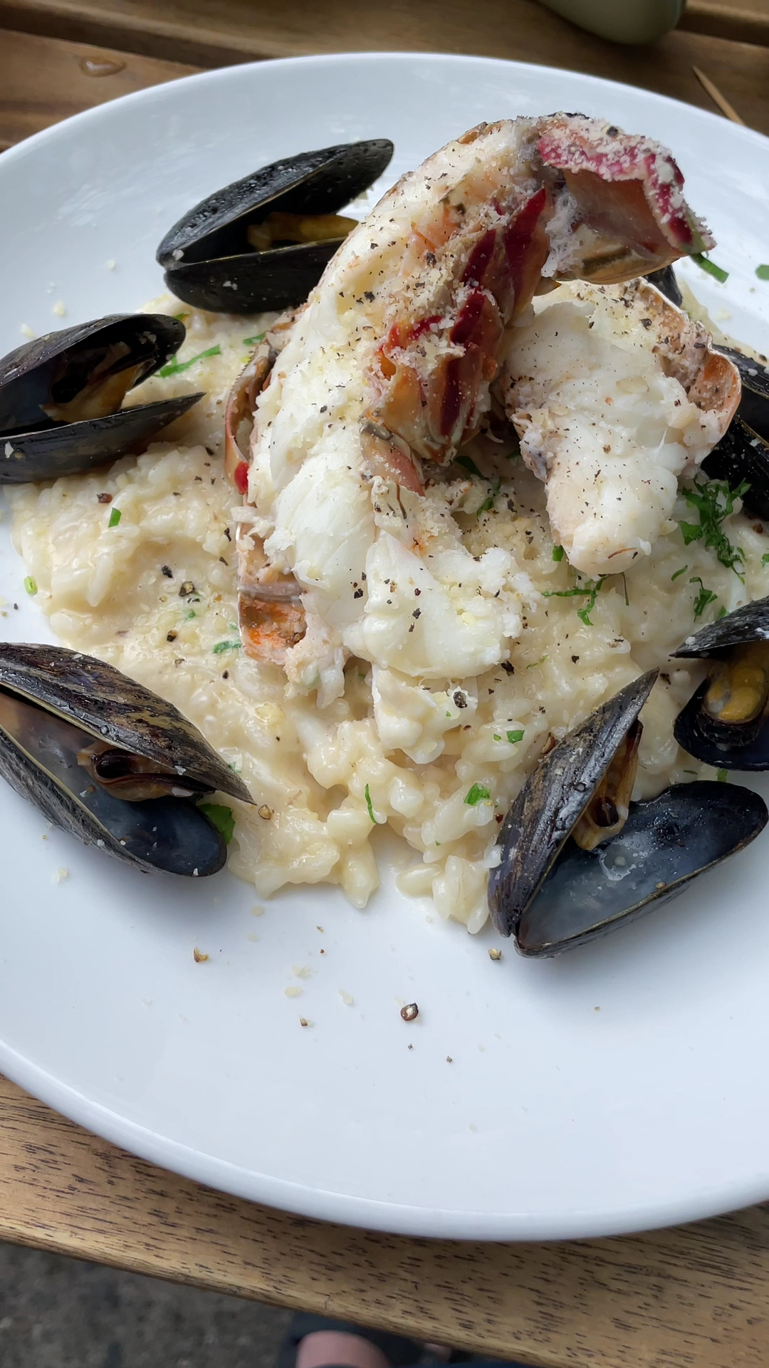 Seafood Risotto,tiniest shrimps and calamari rings I have seen in a risotto dish for the price!