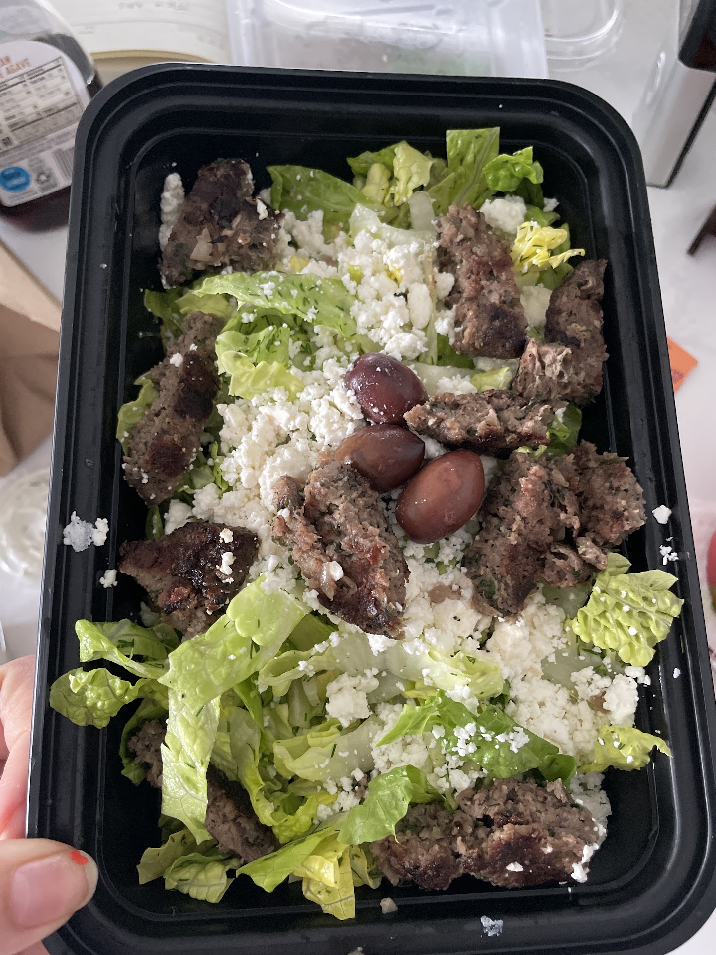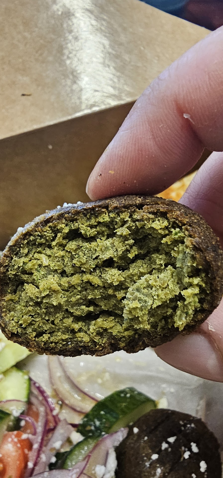 I really, really want to love this place! Unfortunately, it'll never happen. The olive oil is amazing! The cucumbers, tomatoes, feta, and onions were fresh. The fries are pretty good. Unfortunately, my chicken skewer seemed like it was starting to go bad. The portions are small. I expected a bit more considering what I paid for this "falafel platter." And finally, the part that hurt the most, the falafel is disgusting. I was so excited when I first saw this place, but after this meal, I'll...