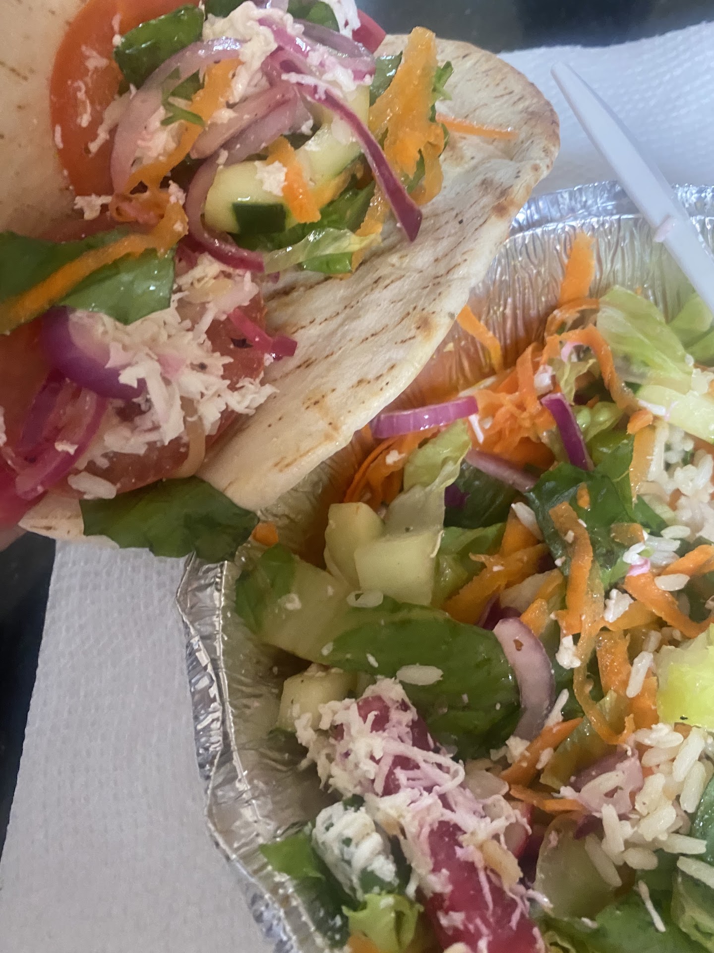 The food is decent, however this was probably my most awful experience with any restaurant ever!!! And I am saying that well aware that this is NYC. I ordered some vegan take out in person today, when the place was moderately busy. I had to wait more than 45 min to get the wrong food, which I could not eat because I am vegan. I was skipped by at least 8 people that came after me. I made the cook aware that he skipped me and he kept doing the same thing for another 20 min, instead of starting my order. When I got up the third time to ask, after about 45 min had passed, they hectically started finishing my order. I had asked for a vegan falafel pita, fries and a salad. The guy behind the counter insisted I ordered a chicken pita and got aggressive and pushy when I explained that I have no reason ordering food that isn’t vegan. His two colleagues next to him stepped in to support the guy and pressure me to buy the food. So left this rude boys club and went...