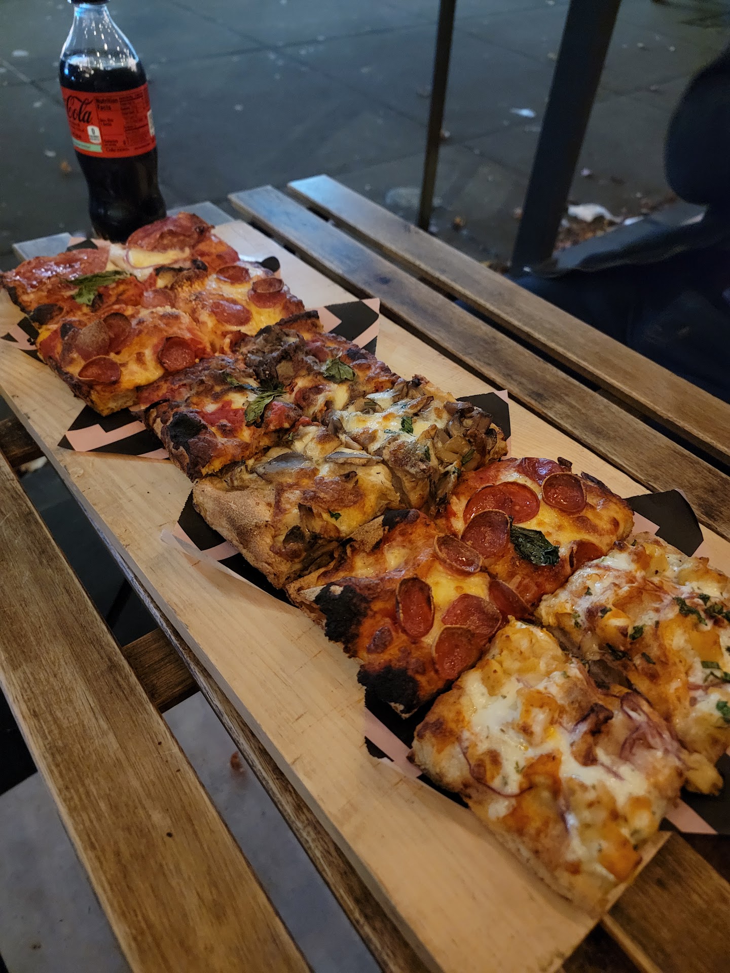 Pizza: Delicious! The crust is the best part, so airy and tasty. I honestly could just eat the crust and sauce. So great! I tried the pep and the Calabrese. Both were excellent. Will happily be back to try more slices! DELICIOUS!