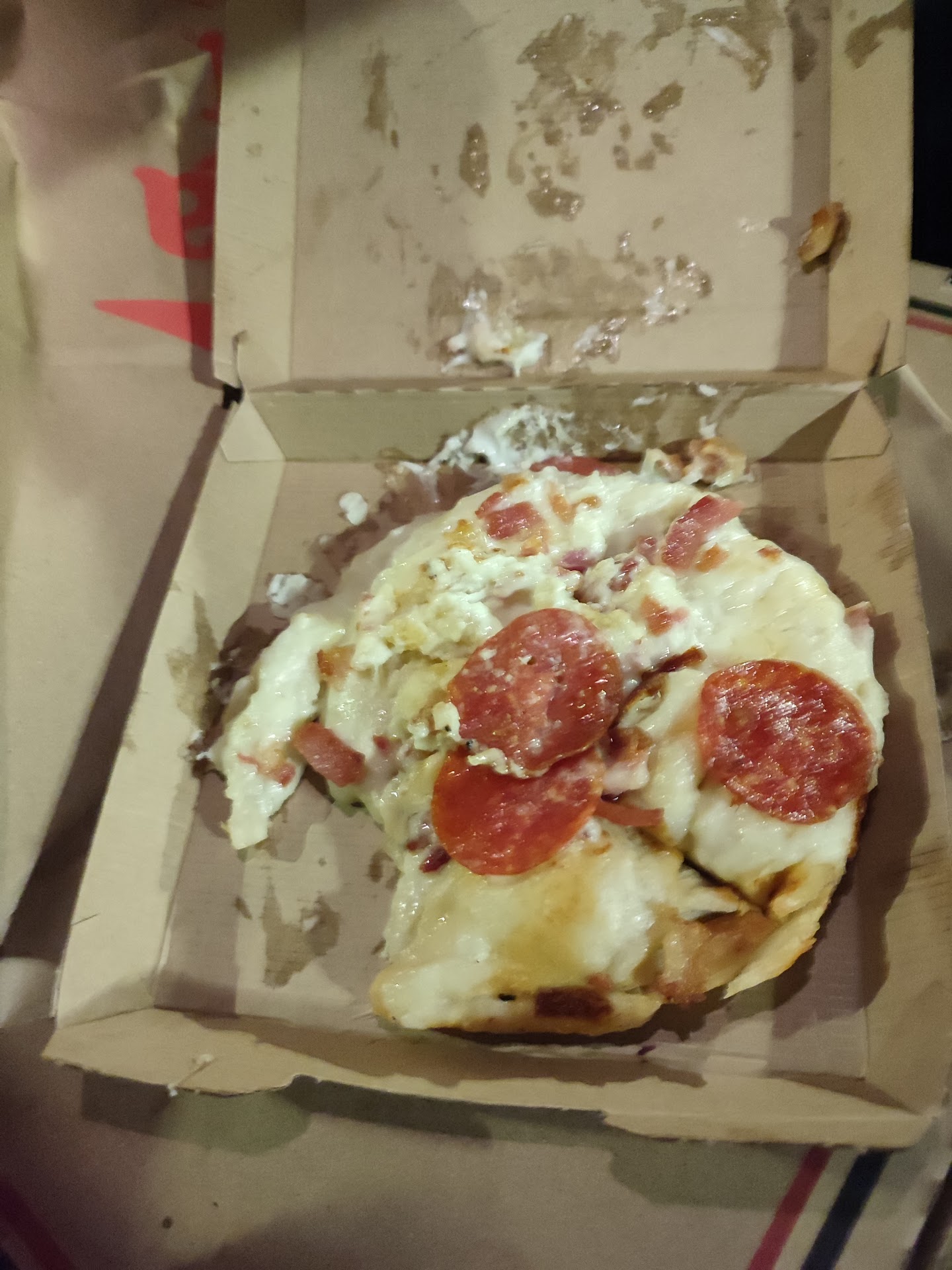 Read moreI ordered 2 pizzas, 8 wings, a 2 litter soda and a chocolate chip cookie pie. The wings were ok and the cookie was good and the soda quenched my thirst but the pizza...Thats a whole other story. Should you even call yourself pizza hut?!? Because what i ate was not pizza. You know that hot melted goey cheese with sauce and deliciousness, THAT IS NOT WHAT I RECEIVED!! It had almost no sauce, i had a thin crust with pepperoni and Italian sausage but that just tasted like the cardboard box so i might as well ordered a cardboard box. The other was half Hawaiian And half spinach, ham and Italian sausage and it looked like they made the pizza and just threw the topping after the pizza was done. Both pizzas were cold when it got here and the driver...oh god the driver...he didn't even come out the car, gave him 40$ and the total was 36 and change so lets say 37 and the driver dead waited there like umm you have everything so what are you waiting for? So i asked how much it was and he said 37 asked for my change and he said i don't have change. So you telling me you were planning on leaving and giving yourself a 3$ tip?! Then he told me he didn't have change. -_- what kind of driver doesn't have change?!? So i like the nice person that i am said okay And let him leave. This place is straight up terrible and i don't understand why they would do this to people. Did i mention i was on a date and This was my first time trying pizza hut. Smh this was straight up terrible. Don't bother trying their pizza but feel free to order the sides Thats probably the best they could...