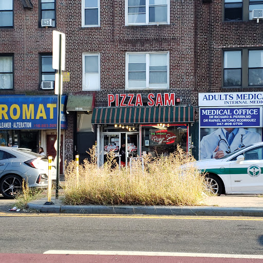 Employees are always nice. You can dine in, grab take-out, or have it delivered locally. Take either the 7 train to the 90th Street stop at Roosevelt Avenue and walk up to Northern Boulevard and 89th Street â or one of the Northern Boulevard buses.. the Q 66 stops right in front of Pizza Sam (or across the street in front of CVS, if you're coming from eastern Queens, like Corona or Flushing).