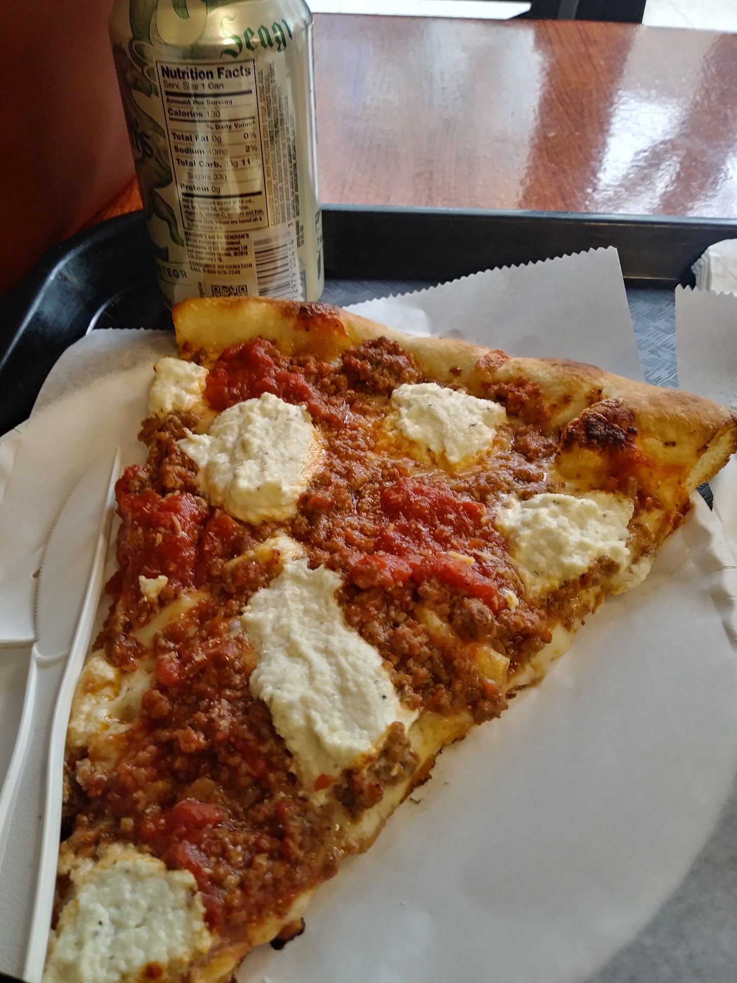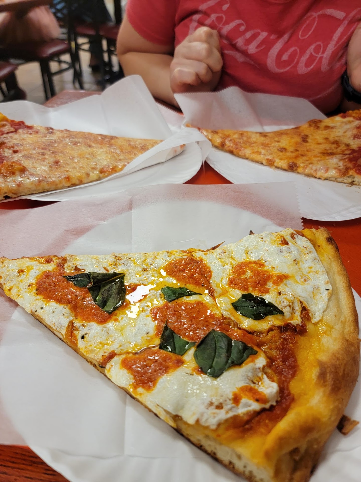 Read morePassed this pizza shop on the way to eat dinner somewhere else. Ended up coming back to try it. We ordered 2 regular slices and a margarita came to $13.50. I can't say enough how delicious this pizza was. I have tried many pizzas and this was definitely one of the great ones. The crust to cheese ratio is perfect. The crust has a great crisp to it and the sauce wasn't so sweet, the cheese had a slight pull. It's that kind of pull that slaps the bottom of your chin. Also not salty. It was worth the drive into Brooklyn. I am going to definitely return to eat here again. Seating area is big and open. Bathroom was clean, I can appreciate that you need a key and it's for customer's only. Keeps it tighty. Staff is very welcoming. Thank you pizzatown for making my belly...