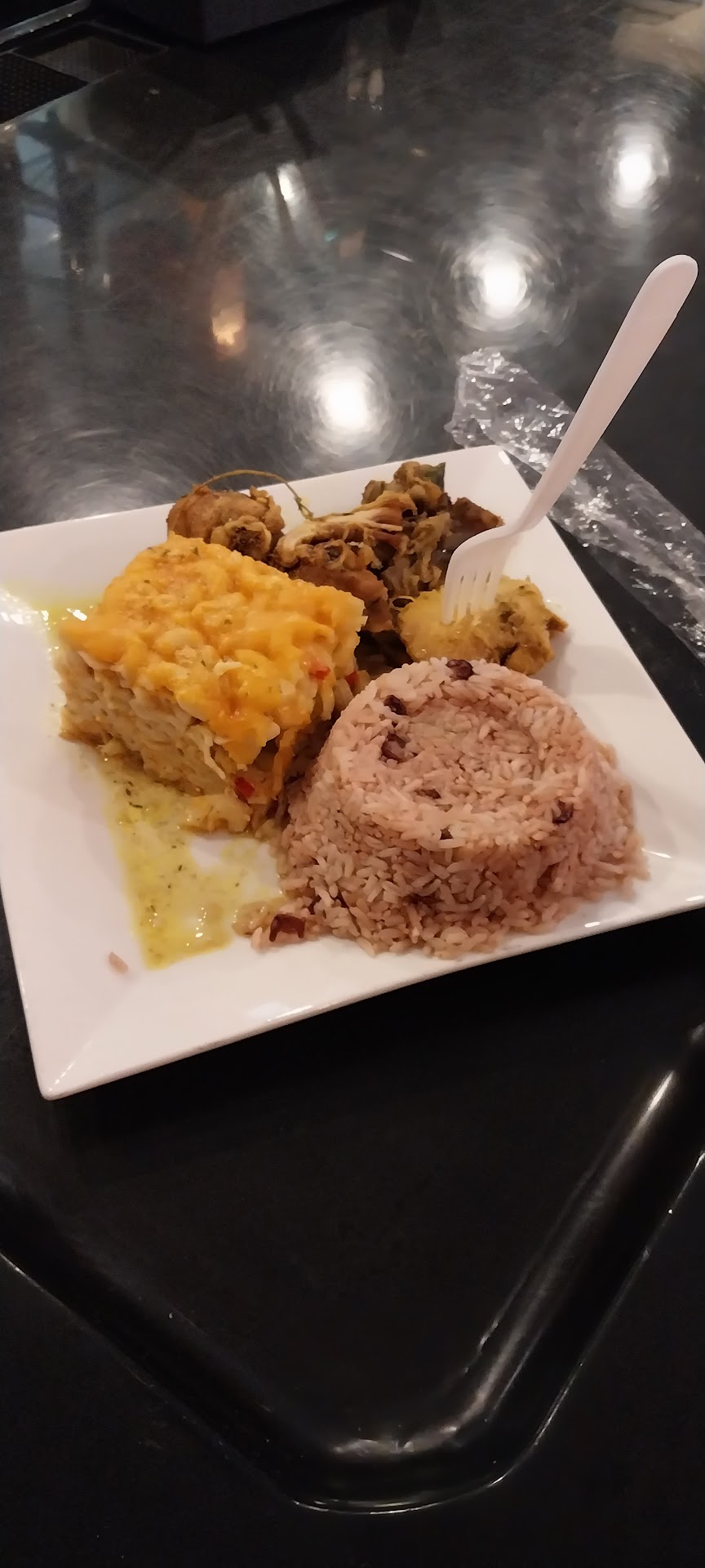 I had a delicious tender melting in your mouth oxtails it was so out of this world. With every oxtail bite was all finger licking good. Before I enter this place I Google and seen the place. I seen the images of the food that caught my Eye. But once I've seen the buffet display they just got me hooked. Buffet of Caribbean food. Lo mein with red pepper s green peppers onions it was so delicious. With a side of cole slow. And a dumpling to sample. Everyone family run restaurant that works here are very charismatic, kind, loving, kind, people. I hang out there over hour dining outside. I felt, I was at a caribbean island. Perfect weather with a nice cool breeze. With a Jamaican cream soda pop and a glass of ice lime water to drink. Very Refreshing. After 8 o'clock there was beautiful caribbean music set the mood for the night. In the end I tip the tip jar. Showing my appreciation of the full Hospitality I received. This place have so much to offer. I will recommend to all, Especially the latins that can appreciate the delicious meal of oxtails and Its various meals within the buffet. Please, don't miss the opportunity to enjoy the experience of it all that this Restaurant...