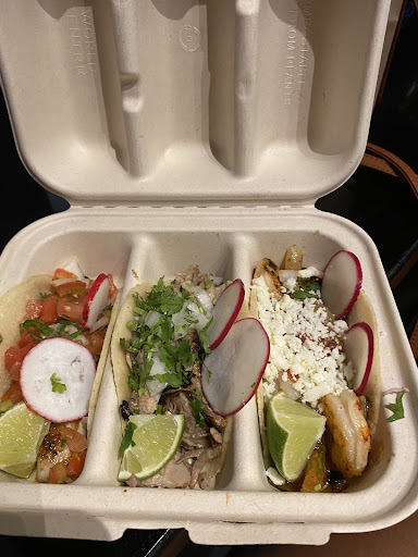 As for the tacos themselves, they were good and I'm sure they'll be someone's favorite (albeit not mine). I got chicken thigh, steak, and grilled fish with avocado, of which the steak was by far the best. The sauces were excellent. The shells themselves started falling apart, because the warmed corn tortilla couldn't stand up to the juice from the proteins.
