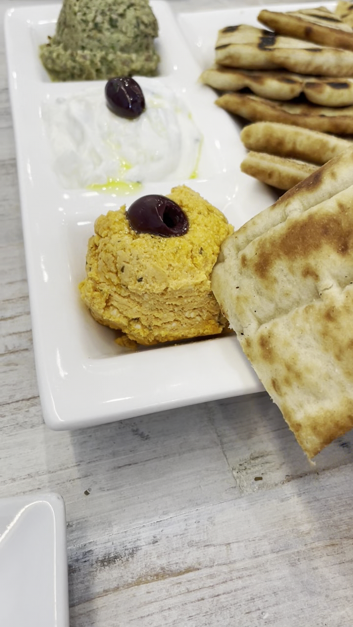 I started with the Chicken Souvlaki Sticks, which were fantastic. They use chicken thighs instead of breasts, resulting in juicy and flavorful skewers that really hit the spot. The accompanying tzatziki was spot onâsmooth and not too overpowering, perfectly complementing the chicken.