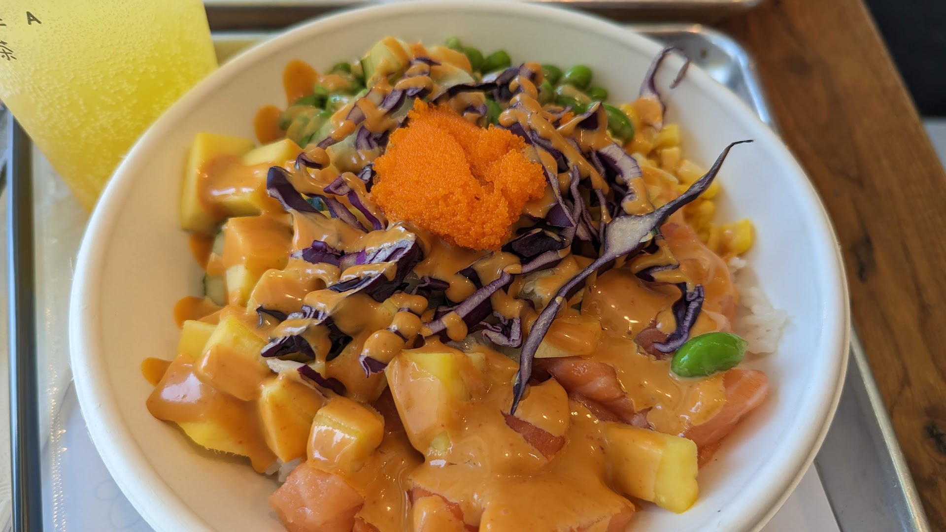 7/5 back for lunch. Love the poké bowl! Bubble tea good too. We sat out back, it was quiet and warm, we needed warm after the crazy cold AC at work.