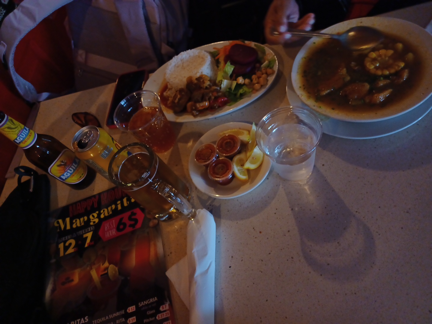 Food: it wasn’t even and “okay” meal. I ordered the rotisserie chicken platter; rice was the best from everything, it came with a side of “consommé “ which should be basically a “flavour” soup or broth; not flavor at all, just taste like hot water with a lot of salt. But the worst thing was the main thing from the plate: the chicken, it was absolutely NOT FRESH, it was warm (not hot), clearly it had been sitting on the kitchen for hours for someone to eat it; it was very dark (almost burn) and extremely dry which leads to an unflavored and flat taste. Clearly reheated over and over or kept in the heat for so long. When I asked to the server about the chicken; perhaps she would sense my discomfort or ask if everything was ok, she wouldn’t bother at all or care about my experience at the restaurant and just said “this is fresh and ran away”. When ordering she wouldn’t bother to offer any drink at all so I didn’t order, less spending for me, less income for the restaurant. CONS: I’ve notice how in this restaurant they use just plastic cups for all the drinks no matter what, which is very unfriendly with the environment and create a lot of more garbage considering all we create already in NYC. To end up I asked for a container to put my leftovers and was charged in the bill, I feel I was paying even for all the plastic cups they use at the restaurant. Like this kind of things should be contemplated already in the cost of operation of the restaurant either by the owner or the manager. Like where in nyc you’re charged for a container .