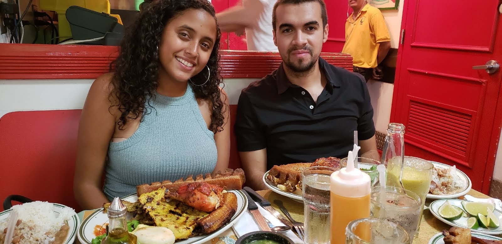 Go to dish is without a doubt BANDEJA TIPICA(a long strip of cubed pork [chicharron], white rice, grilled steak [carne asada], eggs sunnyside down, sweet plantains [platanos maduro], red beans and 1/2 of an avocado).