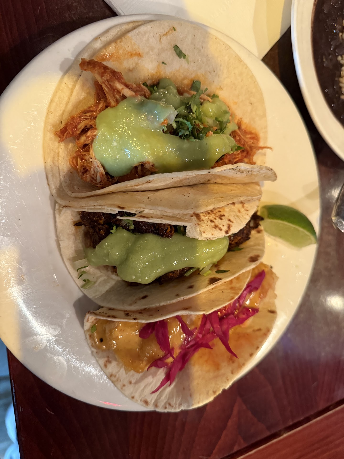 Meats: carne asada was excellent. Some of the best I've had anywhere. The carnitas' taste was acceptable, but it was just chopped pork and soggy--more like what you get at Chipotle, far from the authentic tender and slightly crispy little morsels you would get in California. The fish taco was ruined by the drenching of the mayo-based sauce. Really too bad, as what breaded mahi mahi I could actually taste was amazing--very light and delicately flavored. Why, why did they have to ruin it with mayo?!