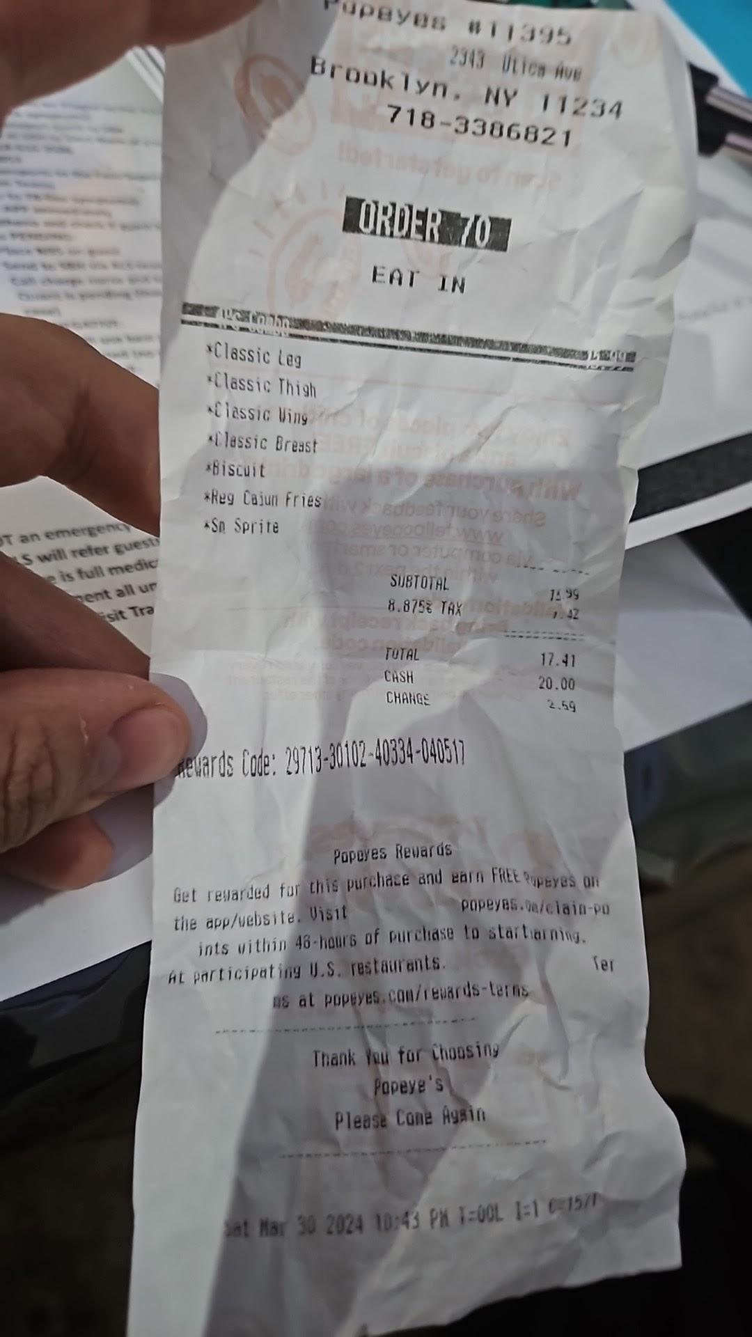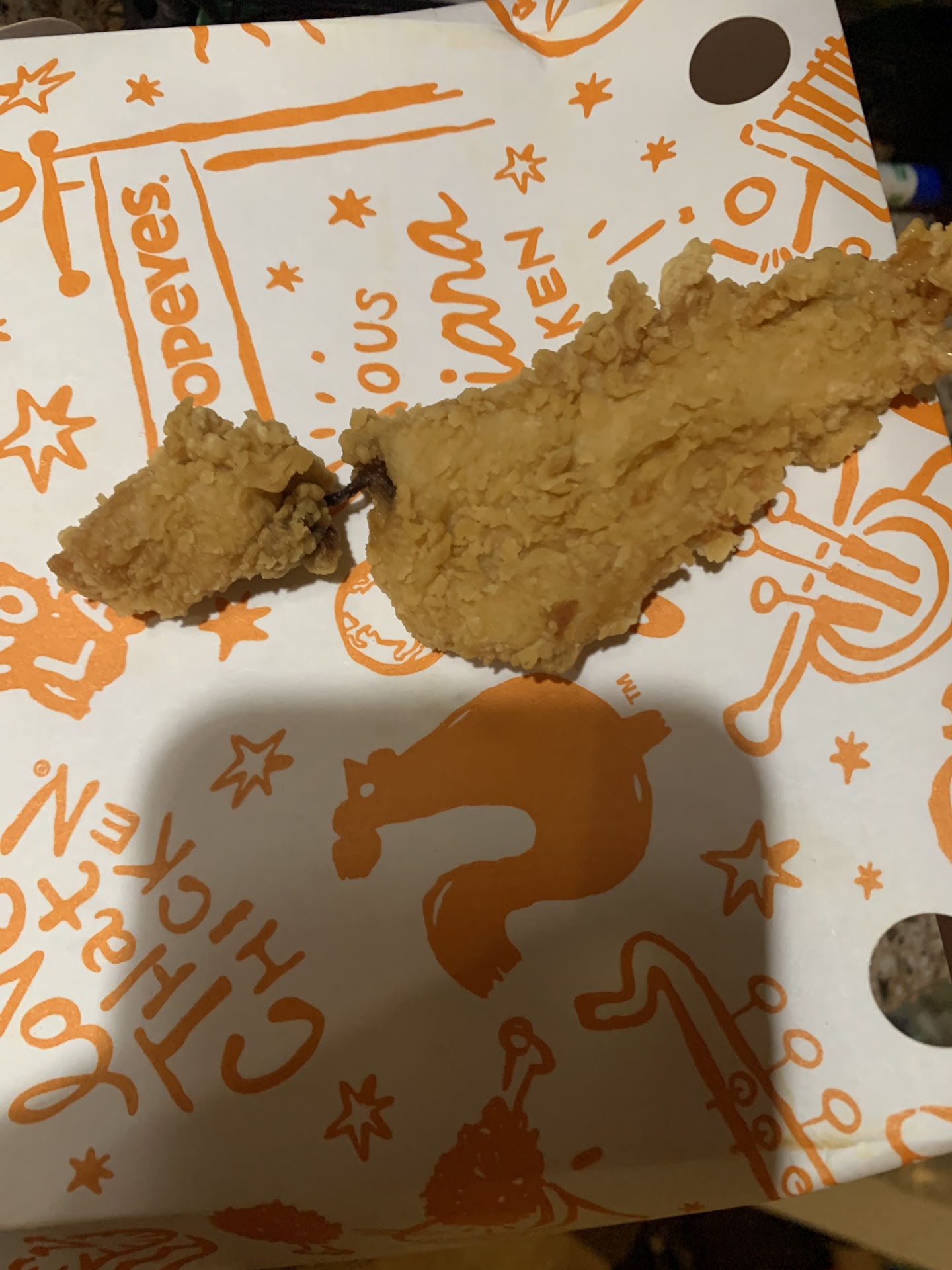 This Popeyes is joined with burger king. My daughter and I had an awful experience. We were informed that there was no spicy chicken in tenders or bone in piecesand that we'd have to wait 15 minutes. We agreed to wait and continued to place our order via kiosk. While using the kiosk we were approached by the same cashier and informed that the spicy will take 15 minutes. Again we agree to wait, she left, came back immediately, saying that it'll be 25-30 minutes. I said ok never mind. So we modified our order with the cashier via kiosk. I ordered popcorn shrimp by itself with bottled water. My daughter wanted tenders and fries meal with lemonade slush. There was no water, no slush. The cashier suggested we're get pink lemonade from the other side of the restaurant which was burger king. We agreed and redid our order without drinks. As we waited over half an hr, we obtained our slushies but they were not slush, they were cups of foam. I returned and explained. The cashier at burger king was nice and said she'd remake it when the ice took hold. She did. Same issue. We requested for Sprite instead, but no Sprite. She offered to get the sprite machine refilled and did. So back over at Popeyes, we sat n waited. Finally we got our orders. We asked to stay in but it was bagged, we didn't complain. Open the food, it was cold. The popcorn shrimp was tiny crumbled pieces of breading, fries cold and tough. Tenders stale, biscuits stale. We wanted spicy chicken and waited longer than what they said it'd would've taken to make it. It was disappointing and annoying especially after the long day my daughter and I had. As we looked at and tasted how awful the food was, we heard customers coming in asking for spicy and being told it just sold out. That didn't make any sense. Cuz the place was super empty. My daughter apologized that she couldn't eat. I told her don't u dare. It's fine. We trashed the food. Asked for the restroom. It was filthy. Toilet paper and water everywhere, used cups and trash. We couldn't lower our pants without cleaning it up. Our stomachs were hurting from tasting the foam filled drinks that were supposed to be slush and the cold stale food. We therefore had no choice but to clean up the area around the toilet. This entire experience took up 2 hours of our night. And about $30. We went home with awful stomach aches. I don't think I ever want to even smell...