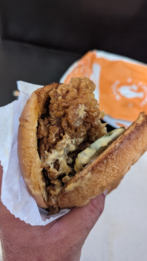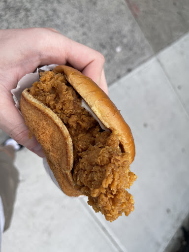 Read morePlace is very clean, simple and has seating. Lovely staff when we went in midday. We even went for a 'late night snack', if you know what I mean... And how was it at 11 at night? Flippin' delish. Different staff but everyone was so kind for our chicken journey. We get our usual, my gal and I each order our regular fab spicy chicken sandos, but we just get the sandwiches, not the meal, we love to save calories when we can, thank you, and then guess what? We get a MEAL of 5 tenders. Gotta have our fries! And them biskee? Forget about thaaat. Strawberry Fanta to balance all that fatty earl, with its sweet and sour complexion, mmm. We can't forget dat blackened ranch and a humble honey mustard. We were floating out of there after we finished. P.S, they always throw an extra tendie indere so you can...