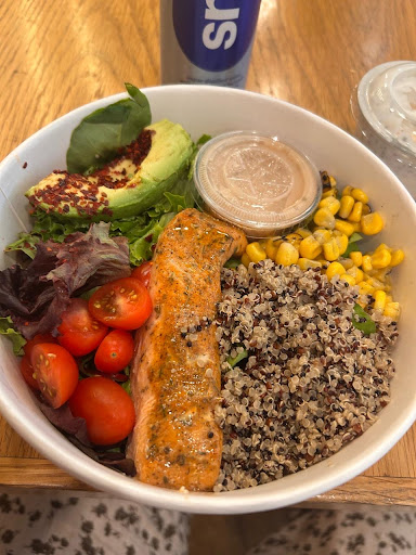 ย ย ย Read moreTried the Blackened Salmon, Avo & Quinoa Salad with Pret's Simple Vinaigrette and guava chai coconut pot at Pret A Manger, both tasted fresh and flavorful. The salad was light yet satisfying, and the coconut pot had a unique tropical twist. Staff were friendly and welcoming. Great...