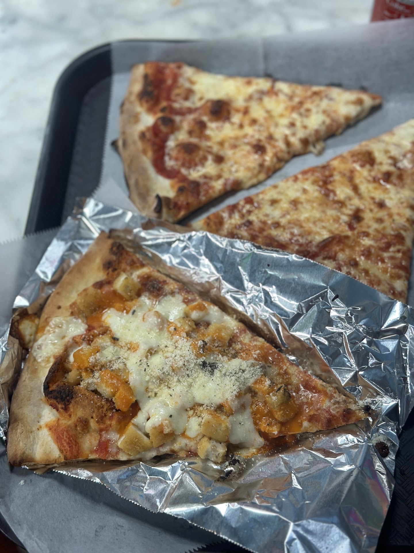 I opted for the half penne and half cheese pizza, which seemed like a fun fusion idea on the menu. However, the execution left much to be desired. The dough was far too chewy for my liking. Instead of that blissful stretch and crunch one hopes to find in a good pizza crust, I felt like I was battling through a workout just to take a bite. It was a significant drawback that overshadowed any potential flavor the toppings might have brought to the table.