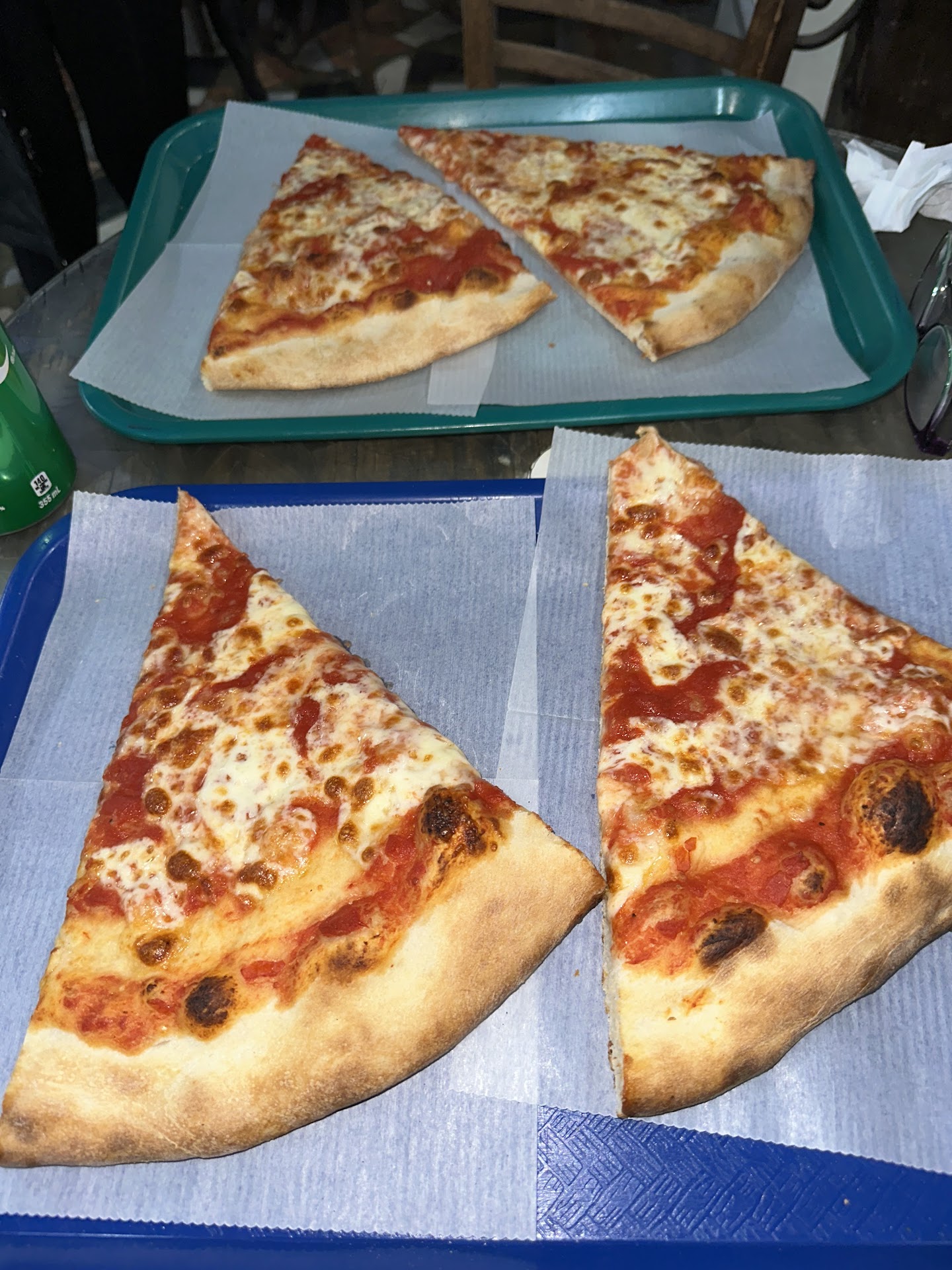 Read moreI have lived in New York for 5 years and this was one of the worst customer service experiences I have ever had in the city. When we came in, there was no one in line, so we went right up to the counter to order... and stood there for 5 minutes waiting while no one said anything to us. When our order was finally taken, they got my nephew's order right but mine wrong. When they handed us our pizzas and garlic knots (which in fairness, were tasty), the woman tallied our total at $11 and then... walked away with no explanation. I waited another 3 minutes but no one came back to receive payment. I asked another man behind the counter how to pay, but he acted like he didn't hear me even though I was two feet from him. So I thought, "I guess you pay at the end like at a sit down restaurant." I took my pizza, went and sat down, took two bites, and then the same guy, who had just barely ignored me, shouted to me that I had to come back and pay. When I came back, he acted annoyed as if I had tried to eat without paying. As I was paying, my nephew asked for napkins, and again, the guy acted like he didn't hear him. I finished paying and he turned and started walking away, so I said, "excuse me, we asked for napkins." He grunted, turned back around, rolled his eyes, grabbed a few napkins from behind the counter, and slammed them on the counter as if this was the the most obnoxious thing a guest could ask for. Finally, we were able to eat our pizza in peace.