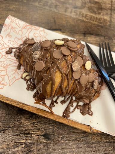 The menu itself is a love letter to indulgence, with just enough refinement to satisfy the most discerning coffee enthusiasts. The chocolate croissant is an experience all on its own: golden layers of pastry draped in rich melted chocolate and topped with velvety chips that balance sweetness with texture. It’s the kind of pastry that stops you mid-bite, reminding you that simple pleasures are often the most luxurious.