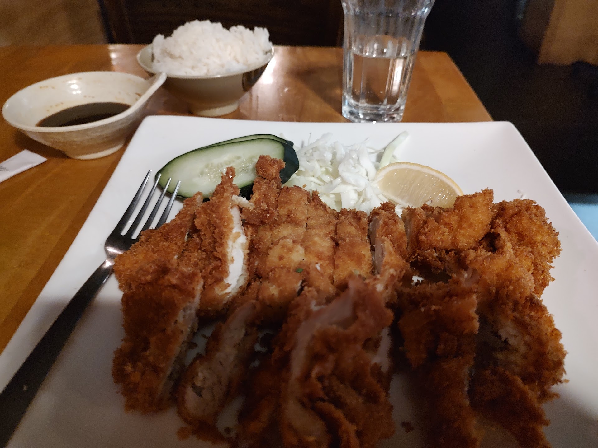 Read moreI ordered the chicken katsu and it comes as any other katsu dish you order in a Japanese restaurant. But I could taste the quality of the chicken was not the best. The cutlet was thinner than normal, I get that they probably hammered it to tenderized it, it was a bigger in size so maybe they really stretched the meat during the process but that wasn't a problem as it didn't feel dried (compared to a thicker juicy piece) but it did feel greasier and the flavor or the chicken wasn't hitting the spot. I really love ordering chicken katsu so I probably have eaten thousands in my life time. If you are not so conscious about it and just want some "fried chicken" then it won't bother you (I'm too exigent maybe). The accompanying miso soup hit the spot, and warmed me up on a cold day. Edamame were good as normal as it comes. THE SERVICE WAS SPECTACULAR 💯. They didn't have many clients on a...
