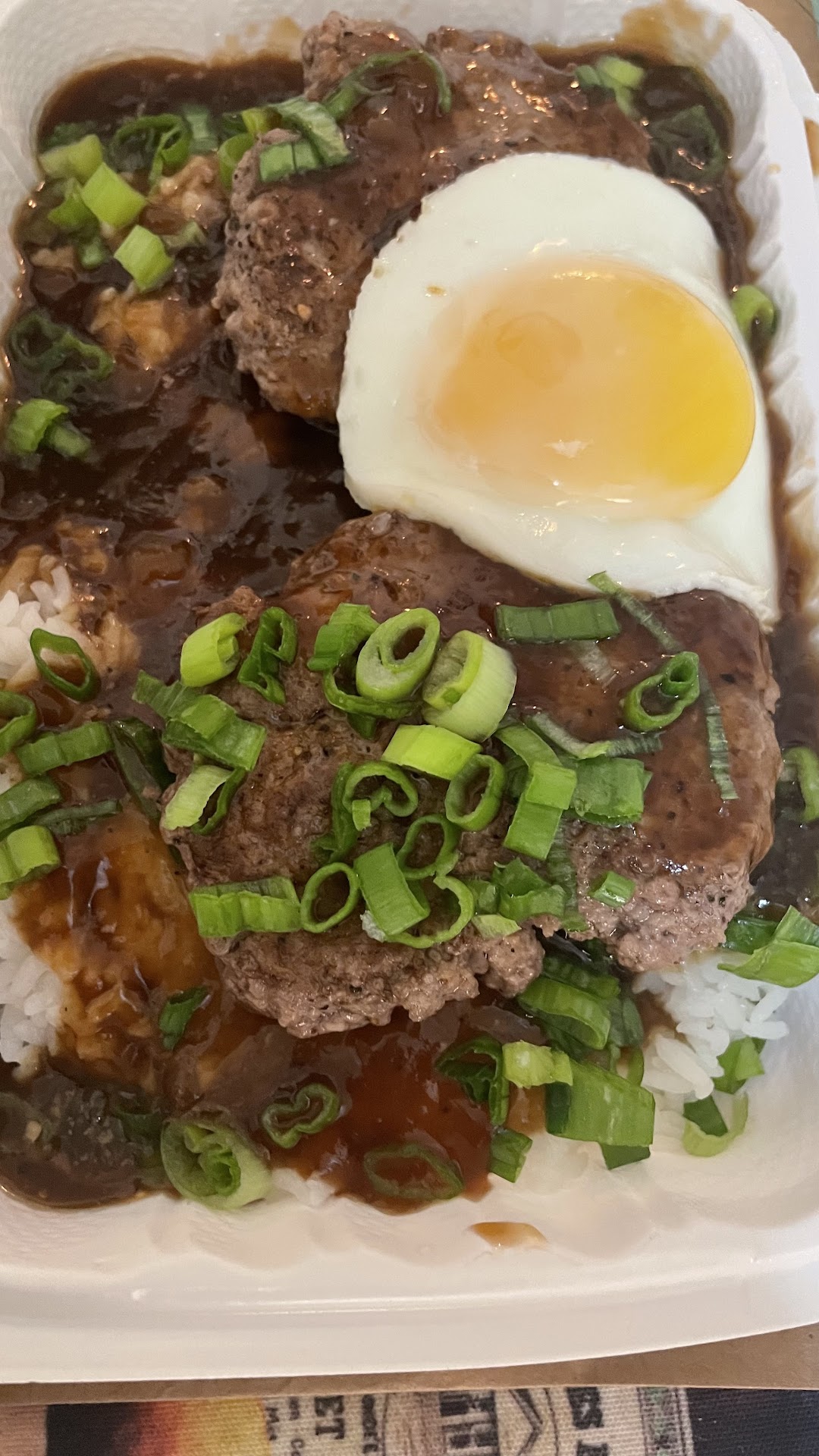 The menu isn’t large with just 6 entrée options (which you can choose as a sandwich or rice bowl) and 5 sides. I’m guessing they are still working on finalizing the menu as they are still in their soft opening stage. I ordered The Big Will rice bowl ($15), The Loco Moco rice bowl ($15) and a side of Fries ($5).