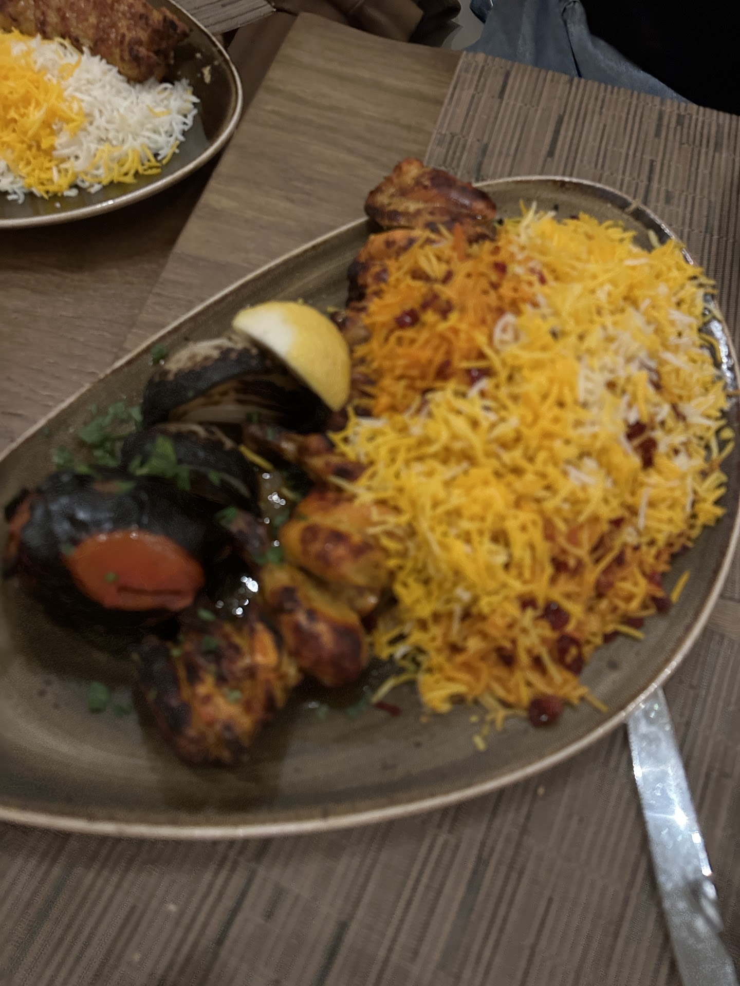 I’m pretty new to Persian Cuisine and have only had it once other time. While I liked it the first time- this time I REALLY enjoyed it. The koobideh kabobs were seasoned perfectly and was soo juicy and tender. For dessert I got Persian tea (which I love) and I decided to try to Faloodeh. The fresh lemon and sour cherries were a lovely touch, making it very light and fresh after that amazing meal. The noodles in it were also a nice surprise as it gave it a nice texture. The best part is I didn’t feel overstuffed or tired after eating. It felt like I was eating a comforting home meal- that being said I left extremely happy and satisfied lol