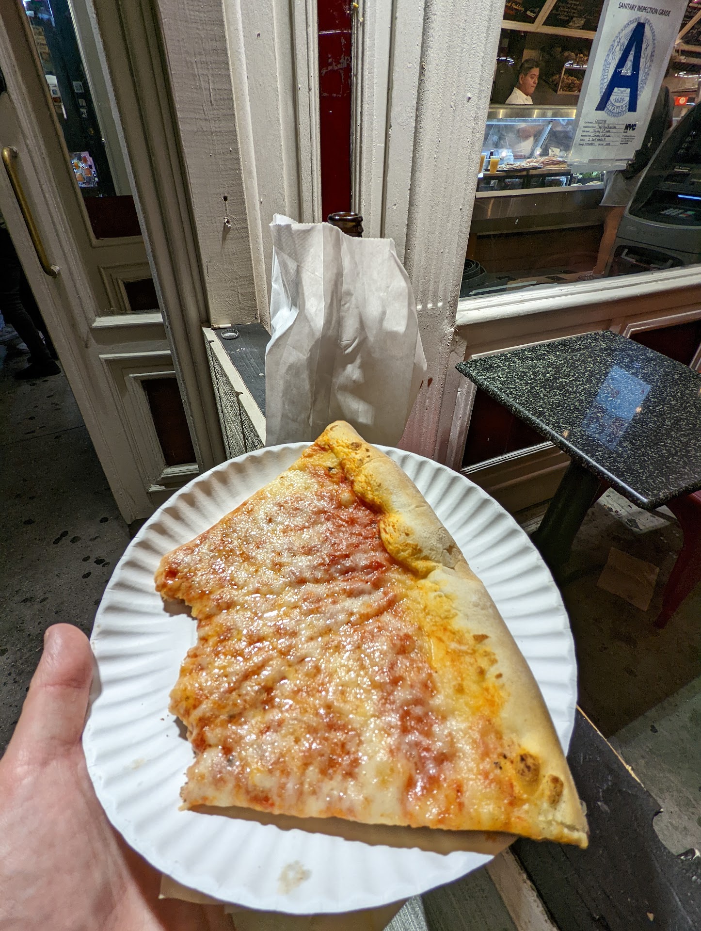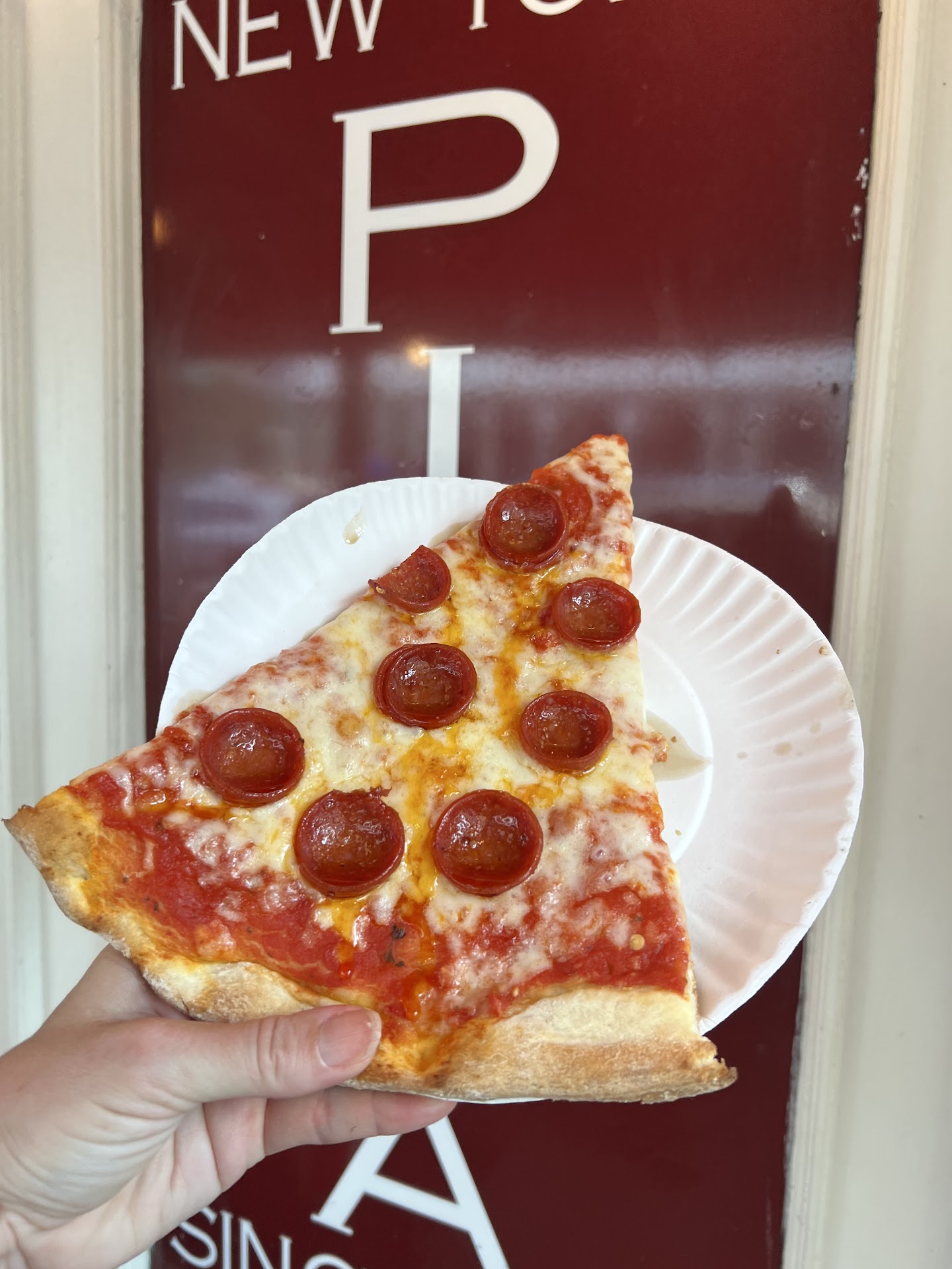 We stayed in a hotel near Time Square and wanted to treat friends from out-of-town to some quick New York pizza. I know it may not be 100% authentic New York pizza but it did the job. I ordered a BBQ chicken slice and plain cheese slice which didn't disappoint. The crust was pretty burnt but no big deal. We still enjoyed it. The portions are huge and filling!