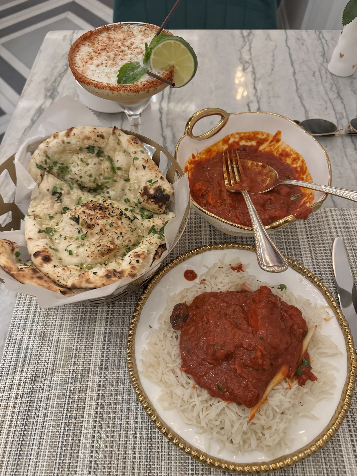 For the main courses, we ordered naan and butter chicken, which was good but leaned a bit on the sweeter side; the chicken parda biryani, which was flavorful and tasty; and the chicken malai kebab, which was tender and cooked well.