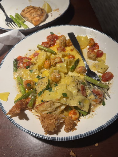Read moreFood was overall not worth it. I was thinking in my head that we should go somewhere else but my Grand Aunt wanted to go for her birthday. I came from out of state for the weekend for Mother’s Day and my grand Aunt’s bday and ordered the pappardelle and was surprised when I got the order because it looked like it had been heated twice. I’m not one that usually returns food but all I could taste as I continued eating was salt and just kept seeing the oil and eventually I could not ignore it. Usually I see this much oil when I reheat my pasta from the restaurant like a day after it was made because the butter/oil starts separating from the rue. It’s very normal when reheating pasta and something tells me they knew this. The food generally was not good overall and the waiters and bus people have SO MUCH attitude. The busboys came and dropped food off and based on restaurant operations I’ve experienced, I would think that they try to take some empty plates with them as they went back to the kitchen to keep the table light and not cumbersome. they just left everything and walked back with empty trays as the table was full of the starter & bread plates. I also raised my hand, the bus boy looked at me and walked off toward the kitchen. I nonetheless asked to see if they could give me something else instead of the pappardelle and they said I ate too much to return it. Personally, there wasn’t much more pasta that came with that meal. Irrespective, the fact that the meal was visibly a mess would have warranted them trying to do something to compromise instead of leaving me with the disastrous plate for me to take a photo of. I would recommend not getting the lobster pappardelle , or anything with asparagus or broccoli. My grand Aunt said it seemed like they didn’t even put them into pots for them to even cook for a few minutes and instead just ran them under hot water.The veggies are undercooked and everything else is cooked too much. The calamari was over salted. The stuffed mushrooms were good. The coconut shrimp was good. No one finished their meal.