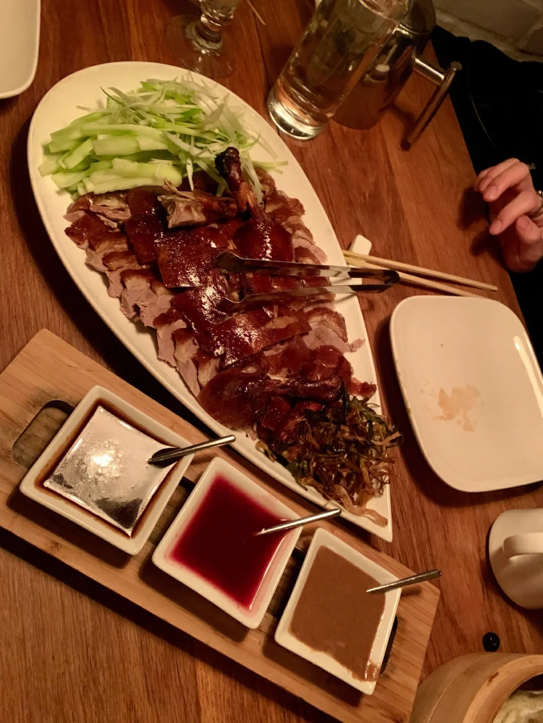 We ordered 4 Dim Sum dishes and the Nueske's Bacon & Egg Fried Rice. They were brought out one at a time. The service was quick and nice. They regularly refill our water but it was confusing who our server was. However, you can get get the attention of anyone and they can help.