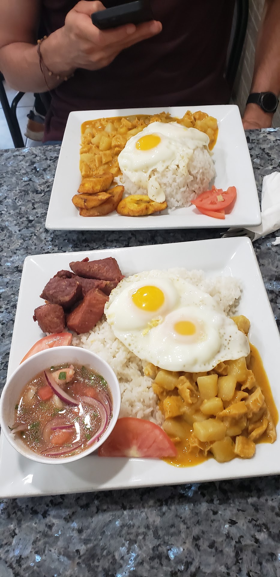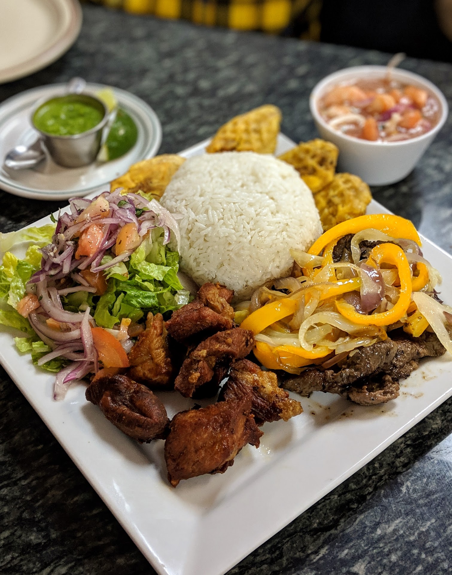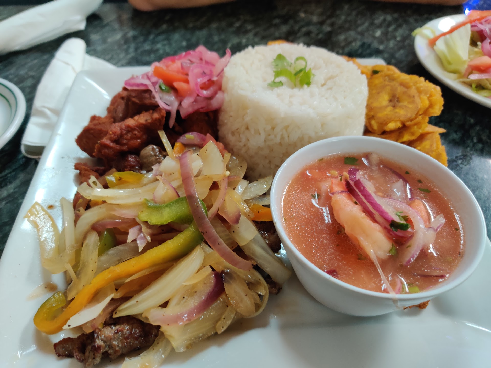 Ā Ā Ā Read moreSmall place but seating is available indoors. There is also a bakery section that sells breads and pastries. I ordered a Bandejita Criolla and Guatita (see picture below) with Tamarindo and Maracuya juice. Everything was great. The food is very tasty and this has been the only place so far that I have found that serves authentic Ecuadorian food unlike the many others. The fried pork was crispy on the outside and moist on the inside unlike most that are hard and dry like a rock. Big portions and reasonably priced....