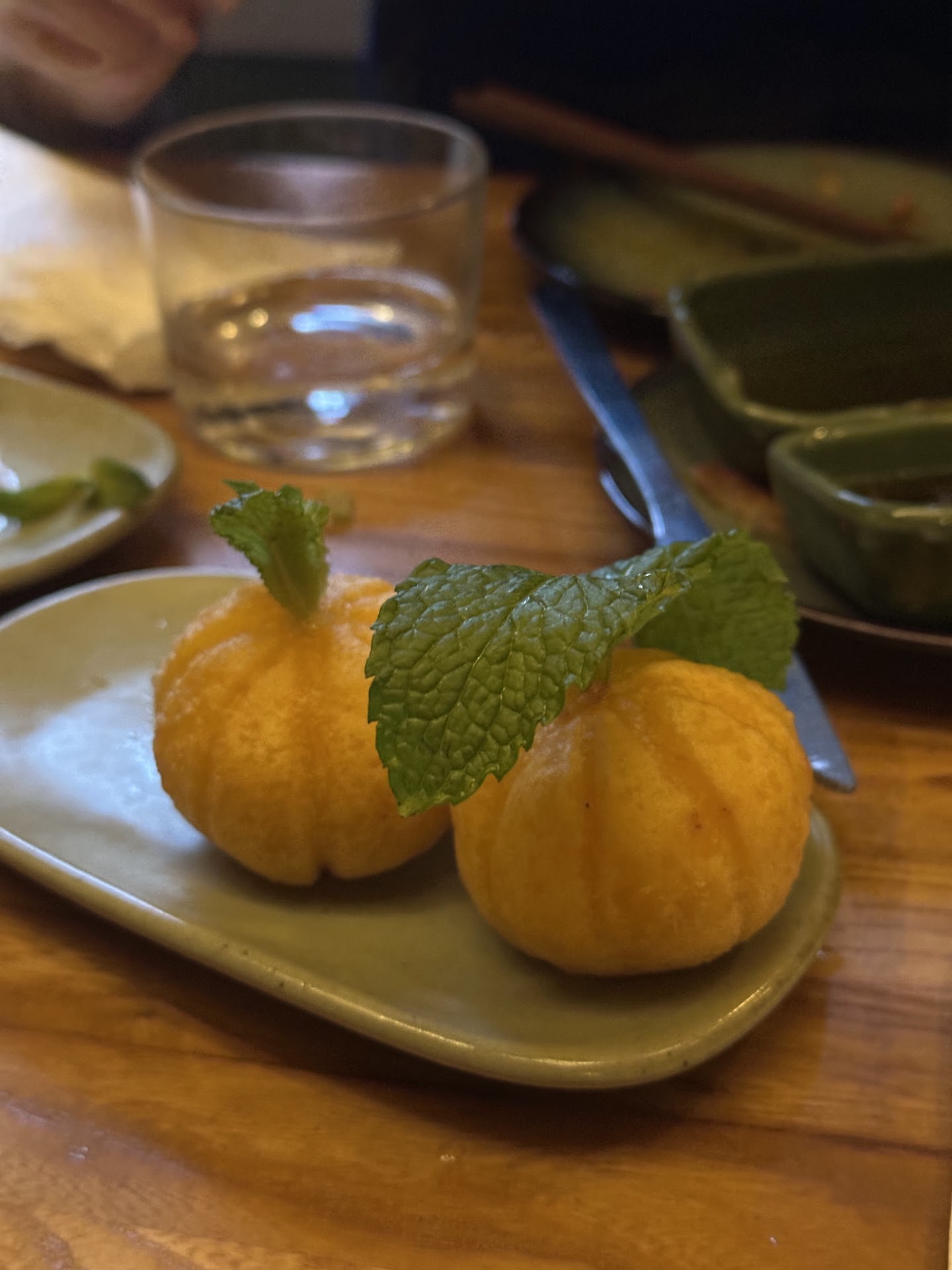 The pumpkin cake had an amazing texture with a light crispy skin and a chewy interior. Be careful of the runny lava filling (salted egg custard) - it may be hot if you don't wait for it to cool down! The fermented milk pudding was a lightly sweetened panna cotta topped with a traditional sweet fermented rice wine and osmanthus syrup and was a refreshing end to our meal.