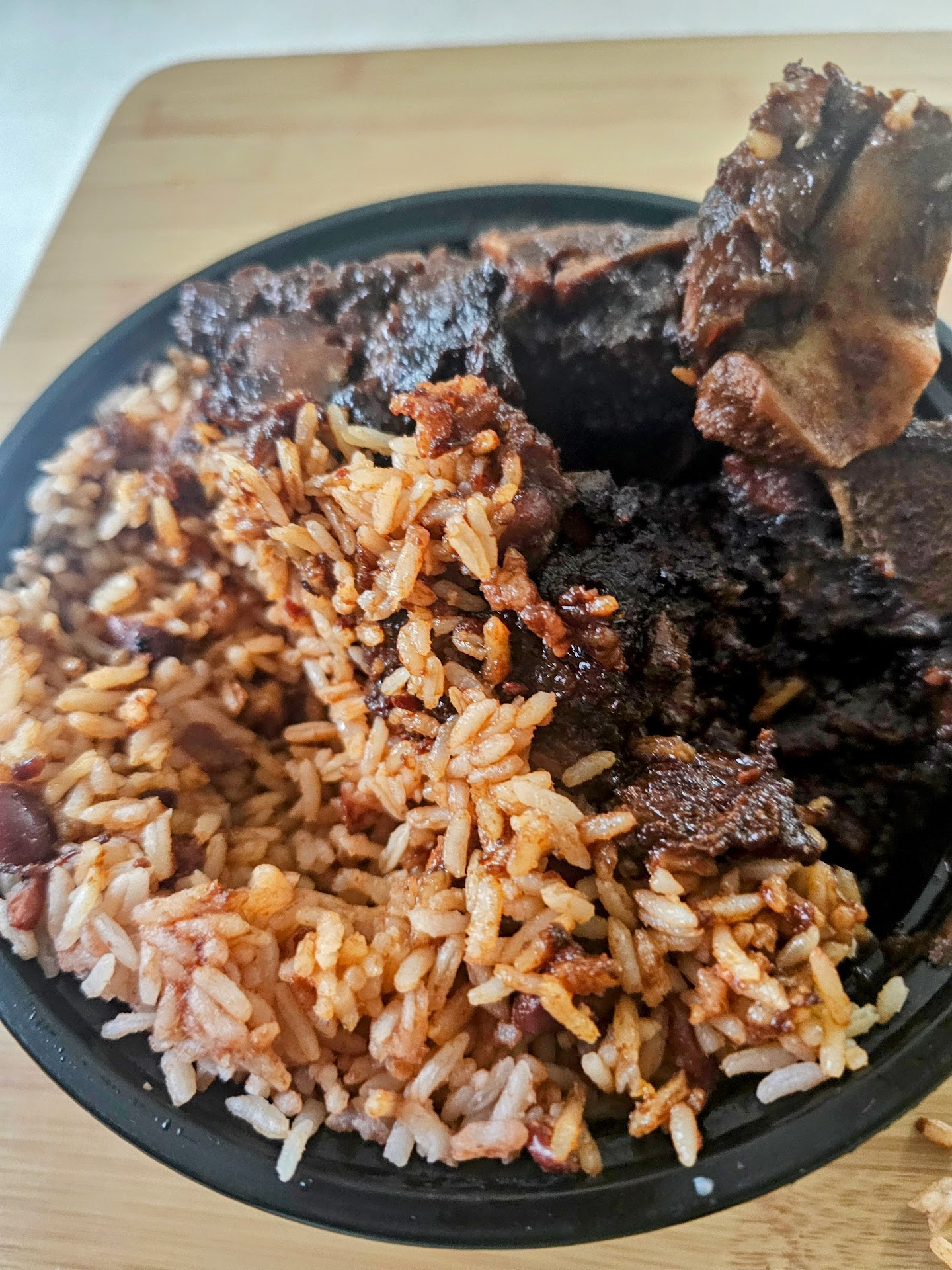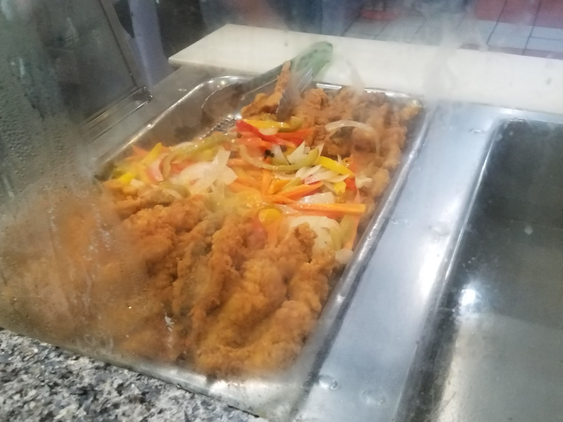 We ordered 3 small food since we were skeptical. Fried Chicken rice and peas Curry chicken rice and peas Brown stew chicken white rice