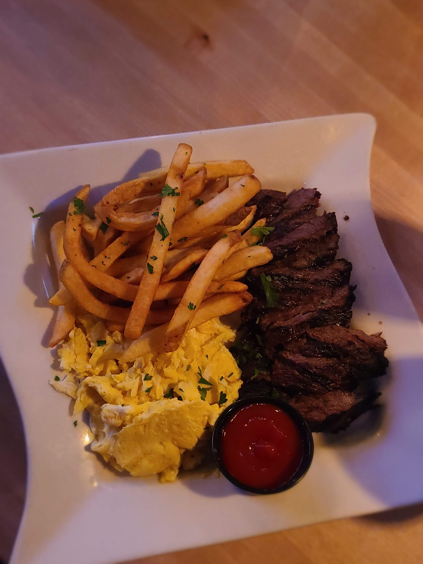 Our server, while very pleasant, was in my opinion either poorly trained or brand new at being a server. She complained about how exhausted she was, how many hours she was required to work and had little knowledge of the menu items. Kept coming over to us after our main meal was done to ask if everything was okay. Never said can I get you dessert, coffee, the check .....she had no clue how to close us out. Again, no big deal!