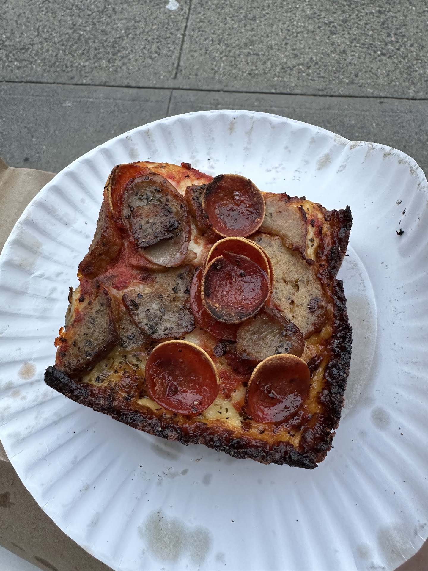 I believe every slice shop should be judged on their plain slice. How does their pizza hold up when there is nothing else there to distract? Roebling's plain slice is more than worth the very modest price tag--- the dough is chewy and crunchy in all the right places with a nuanced yeasty sour kick, the sauce is tangy and meaty, and it is always served to you at the perfect level of crispness.