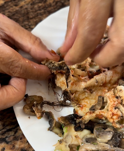 Read moreGROSS! Apparently a chunk of wavy brown hair (about 2 inch long each) found on a mushroom slice is “normal” – according to the manager. I’ve posted the pictures of what I found in my pizza, so you can be the judge of whether or not mushrooms have hair.
