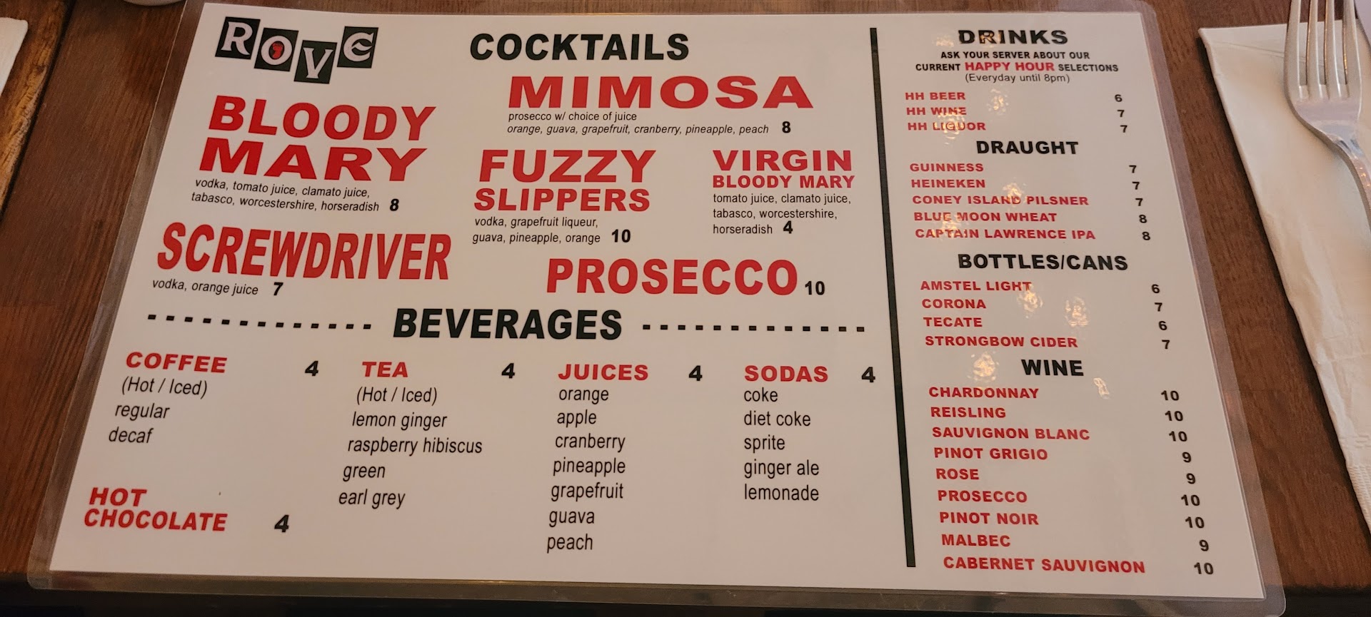 Read moreRove is a small, simple restaurant / tavern. It is on Austin Street in the middle of that crowded busy district of many restaurants. Rove is a compact restaurant with small tables and decent number of seats at the bar. The menu is also compact, with a small set of choices in the general American motif. Think burgers and sandwiches. They are tasty. Several beers are available. So are several whiskeys.