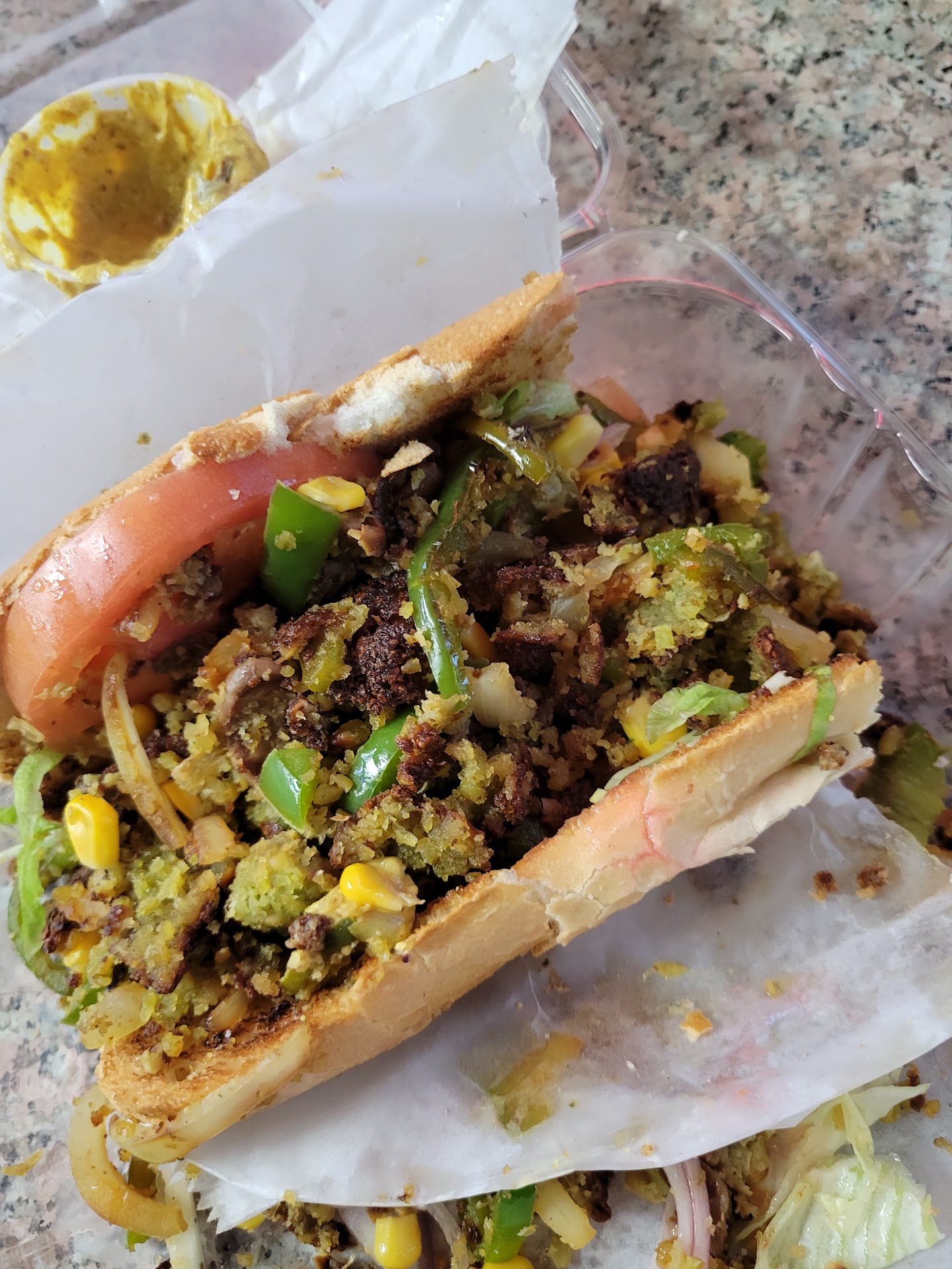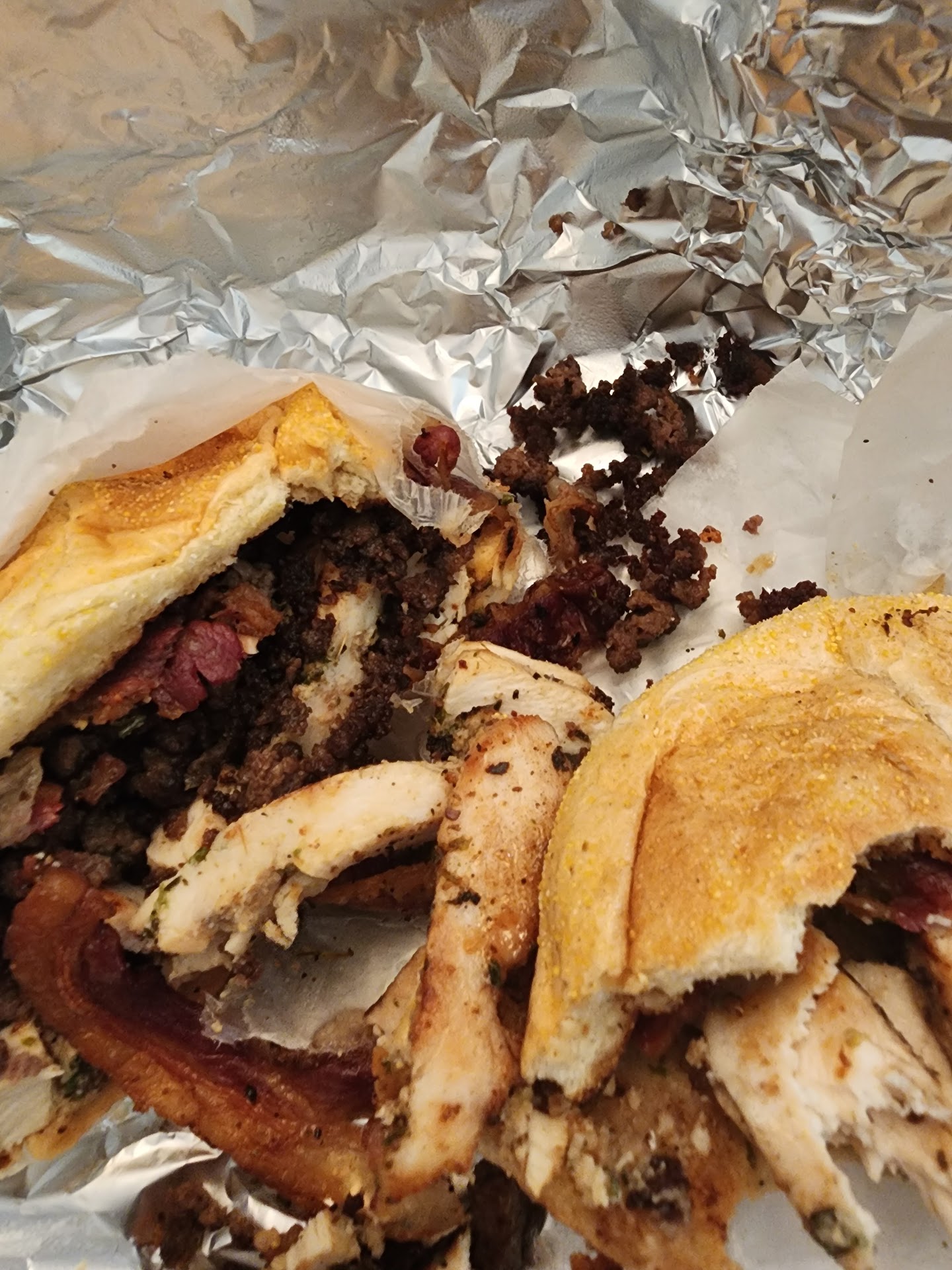 I again, order the roxana (when will i learn!?). Its is described on both postmast and Uber eats as - "chopped beef with grilled Chicken topped with bacon and pepper jack cheese on toasted garlic hero"