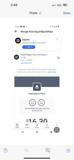 OK, I am from Cincinnati, Ohio and I just recently moved to Jacksonville Florida. I am also a UPS driver and we happen to drop off a trailer to the hub on 43rd St. in New York. On the way out, we stopped to get some pizza. This is the first time we actually had authentic New York style pizza. Now, when I say, this is by far the best pizza I have ever had in my entire life, 48 years to be exact this statement simply doesn’t do the pizza any justice! We got the buffalo chicken pizza by the slice, and as we are driving out of New York City, my co-driver and I looked at each other and said we should have purchased the whole damn pie! From the top shelf ingredients to the most perfectly cooked crust I have ever bitten into! I could literally eat this 5 days a week easily. Now every time I go to a pizza place around the country or in my new hometown of Jacksonville Florida I am constantly comparing it to Royal Napoli pizza, and there is simply no comparison. I don’t like crossing the George Washington Bridge and coming into New York due to the amount of traffic and tight spaces that I have to navigate a semi through. But now that I have had the pizza, I will gladly drive across the GW any day of the week just to get my hands on more of this pizza! If you guys at Royal Napoli Pizza would consider doing me a favor, either sell me a franchise or build a location in Jacksonville, Florida! There is nowhere in the Midwest, or the southeast that has pizza that could hold a candle to yours. On behalf of all pizza lovers and society in general, thank you for making such a great pie. Wish I could have uploaded additional photos but we couldn’t stop...