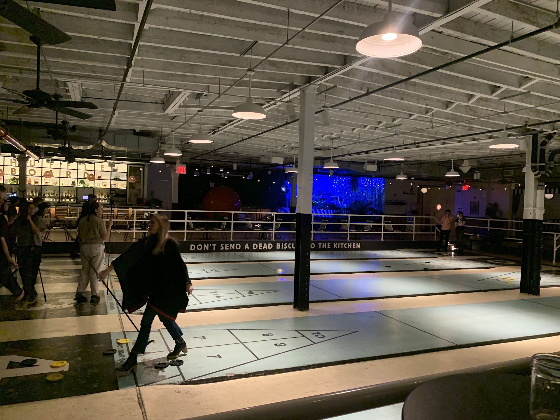 Read moreMight possibly be the best recreational experience I have had in years! If not possibly EVER. The place and the staff are that good. The whole staff is warm, welcoming, incredibly efficient and totally passionate about customer service and your experience here. They go above and beyond every step of the way. From greeting, to managing wait times, to communication, to accommodation, to education on gameplay...they are just totally fun hosts. The entire staff acts like they are the founding owners. The proficiency of customer service here is reminiscent of Disney World, but much cooler people. As far as the facility, its great! While you wait (in person reservations ONLY) you can play board games, oversized jenga and connect four. Obviously shuffleboard is so much fun once you get on a court. Its challenging and a good time. Equipment and courts are well maintained. The decor and the vibe is a great time too, without being overdone or in your face. The bar is easily accessible, and well serviced. You wont wait more than a short minute or two for drinks. Drinks are also well poured and a good value. The selection is a little lacking if your not someone who orders typical cocktails, beer or wine. Yet you'll definitely find something. I was also impressed at the size of the facility. Its very comfortable. If you have covid concerns you should feel plenty safe that you're not squished on top of people at the bar, courts, or tables. One more time, THANK YOU to the manager and front desk staff. You were all truly exceptional. I waited 5 years and drove 2 hrs both ways, in a hurricane no less, and you all made it worth it all. Cant wait to...
