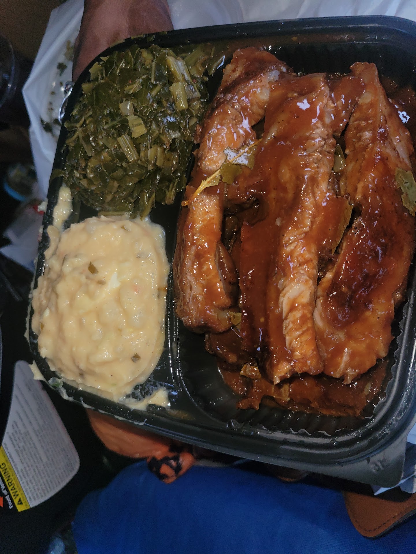 Β Β Β Read moreSo my mom has been wanting to go to this place for 4 months since seeing it on the news one morning. I wasn't as excited to go as she was.... Bayyyybeeee she ordered a Rib dinner and I ordered a BBQ Chicken dinner. The chicken is absolutely amazing π the Rice and Peas were singing a tune to my beating heart π. The Mac n Cheese was good.. the Collards tho someone made that with true love and conviction Do ya hear me! I don't eat potato salad at all (don't cancel me) but sweet baby Jesus in the flesh okkkayyy... the Potato Salad ion care what they put in it was on a different level than any potato salad you'll ever have I GUARANTEE IT π―. For the price of the dinner the portions are everything! I just didn't care for the cornbread... it had rasins in it which is not how I eat my cornbread but hey to each his/her own. OH how did I forget the Peach Cobbler... someone must've stuck an elbow along with their foot in it because it truly is the Bees Knees π π€£π The only thing they didn't advertise about this place is that once the food hits ya soul and the pit of ya stomach I promise the next thing you'll see will be the back of...