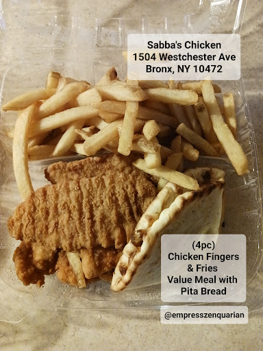 Read moreThe Chicken Fingers Meal with Two Sides from this Restaurant (Sabba's Chicken) was so Good. The Chicken was Well Done with the Perfect amount of Breading, Well Seasoned, and Fries Cooked to My Liking. The Pita Bread was also Fresh and Delicious. My Order Arrived Hot with Everything I Requested in a Timely Manner. The Chocolate Chip Muffin I Had was Soft and Tasty. However, the Blueberry Crunch Muffin I had was a bit dry and a bit stale.