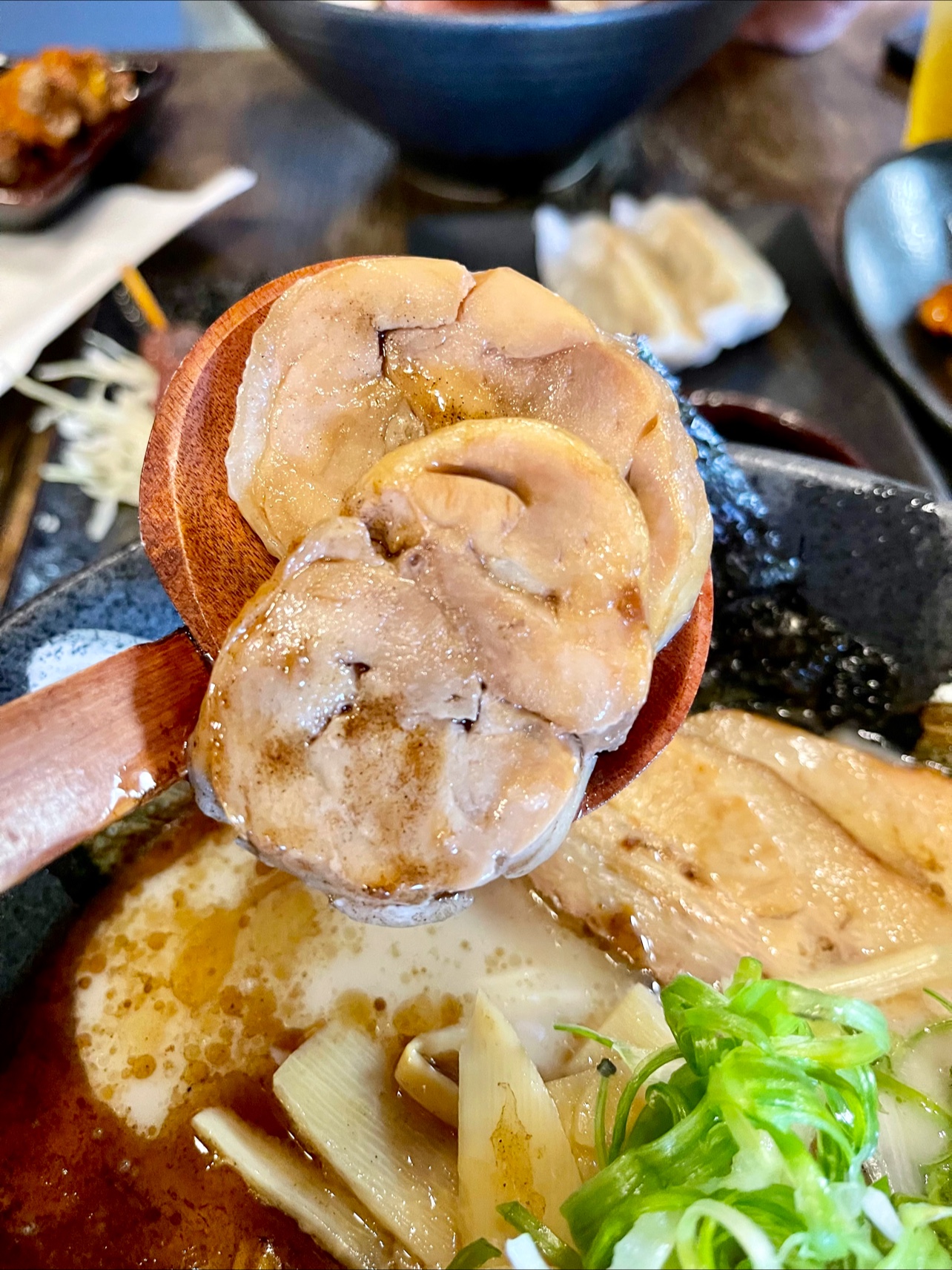 Read moreI felt compelled to leave a hot take for the Un Initiated, those not acquainted with Sakai Ramen. A staple of the menu, and in the Shoyu Ramen soup, you will find chicken Chasu. Im not sure, but I think this Chasu is a specific korean cut of pork and / or chicken. Its got some fat on the outside and its lean in the middle. Before you go all " oh but the ramen at this place had pieces of fat on the chicken" , well this is the point! It adds the signature flavor to Korean Ramen.