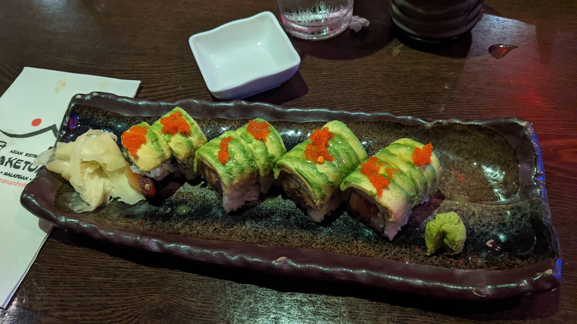 I ordered the Brooklyn Roll and a side of the BBQ Squid. My wife ordered the Cucumber roll.