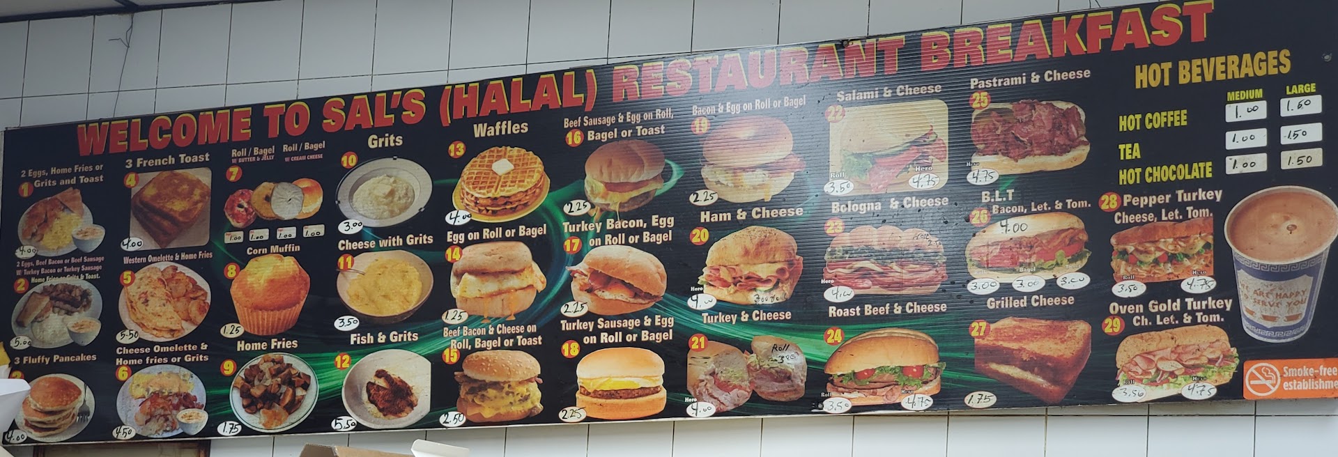 Love sal's he don't let no one else touch that grill he makes great food, especially breakfast he can take 5 different orders and make everyone right idk how he does it but he's great at it.. He has been here longer than I've been on this earth and probably hasnt been there a total of 10x if that.... Don't go there looking for no pork either another reason I love sal's